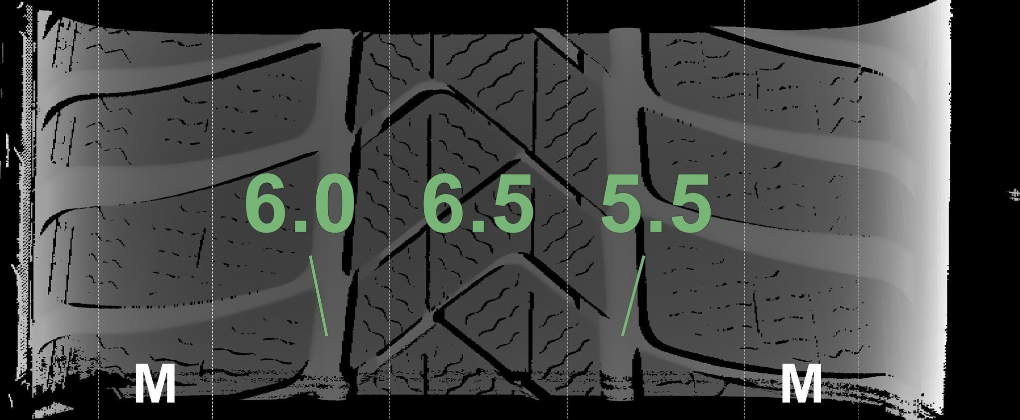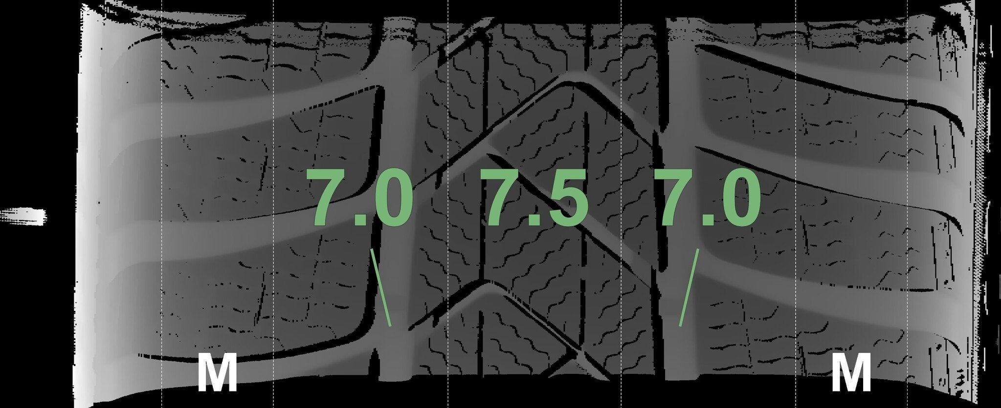 De gemeten profieldieptes en de details van de velgen zijn hierboven weergegeven.