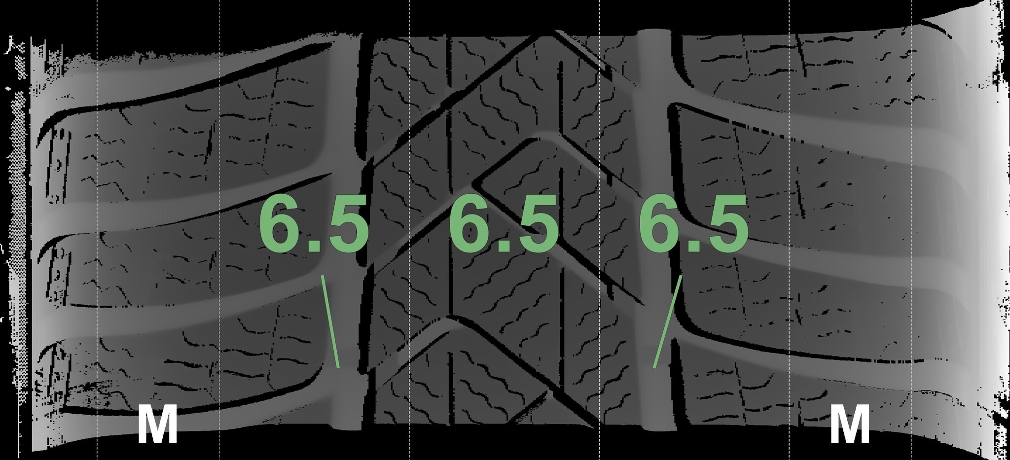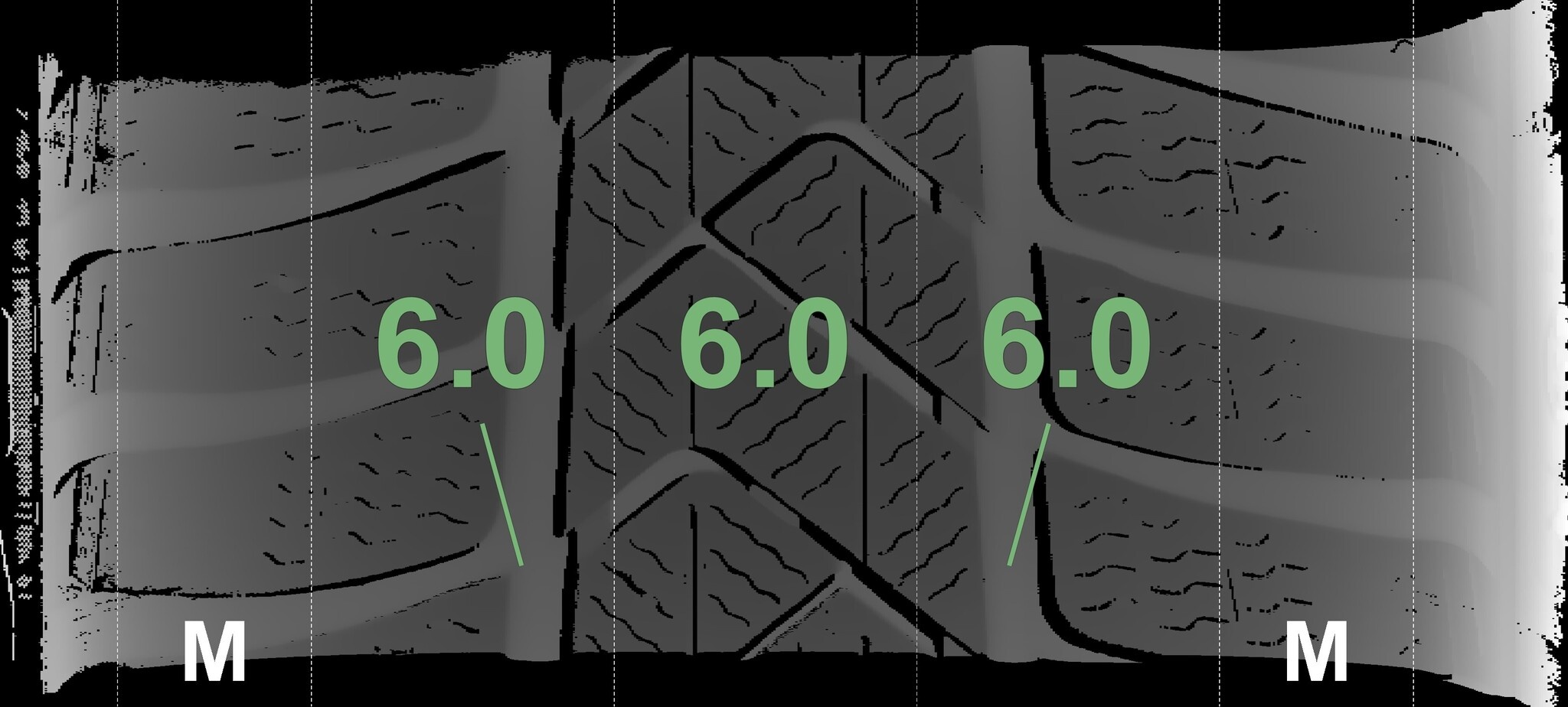 De gemeten profieldieptes en de details van de velgen zijn hierboven weergegeven.