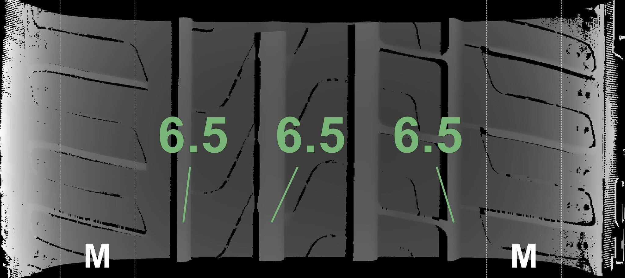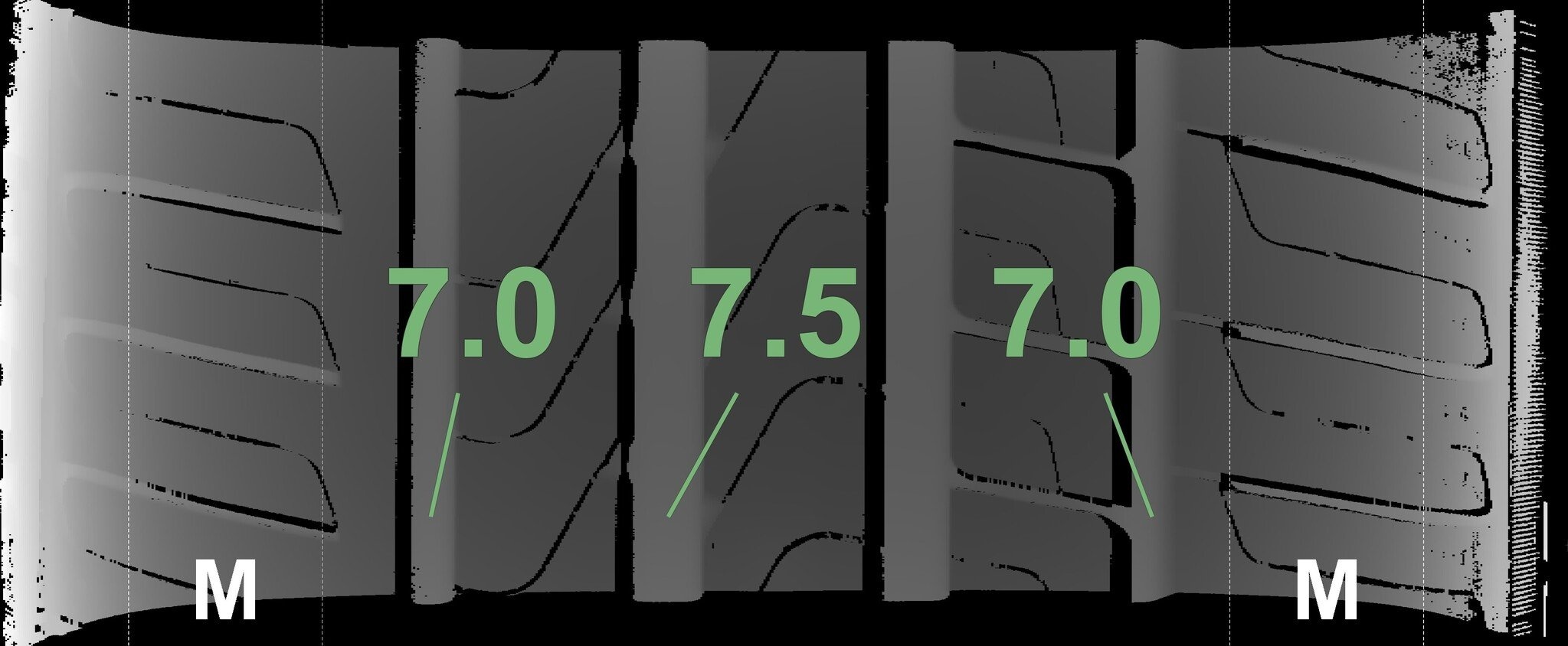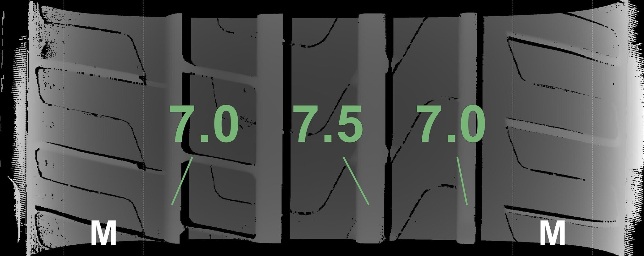 De gemeten profieldieptes en de details van de velgen zijn hierboven weergegeven.