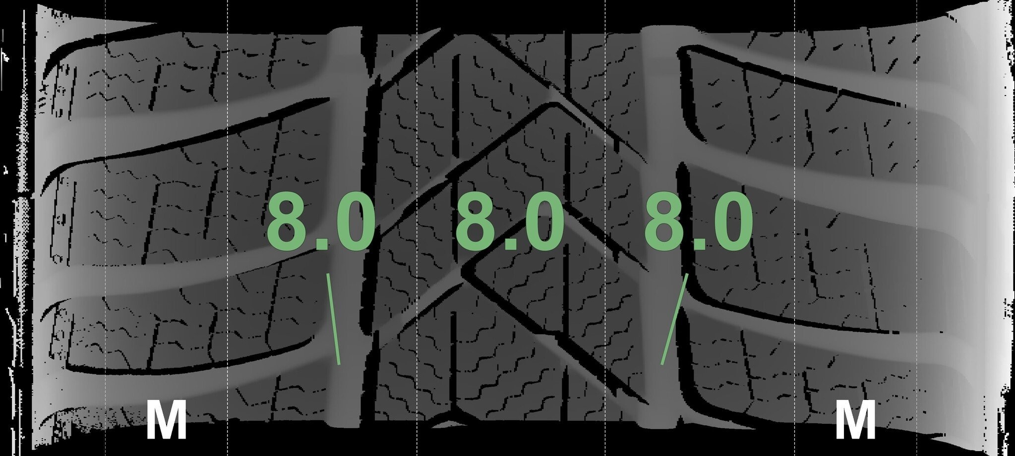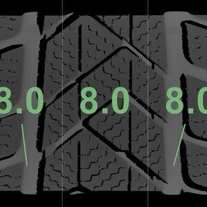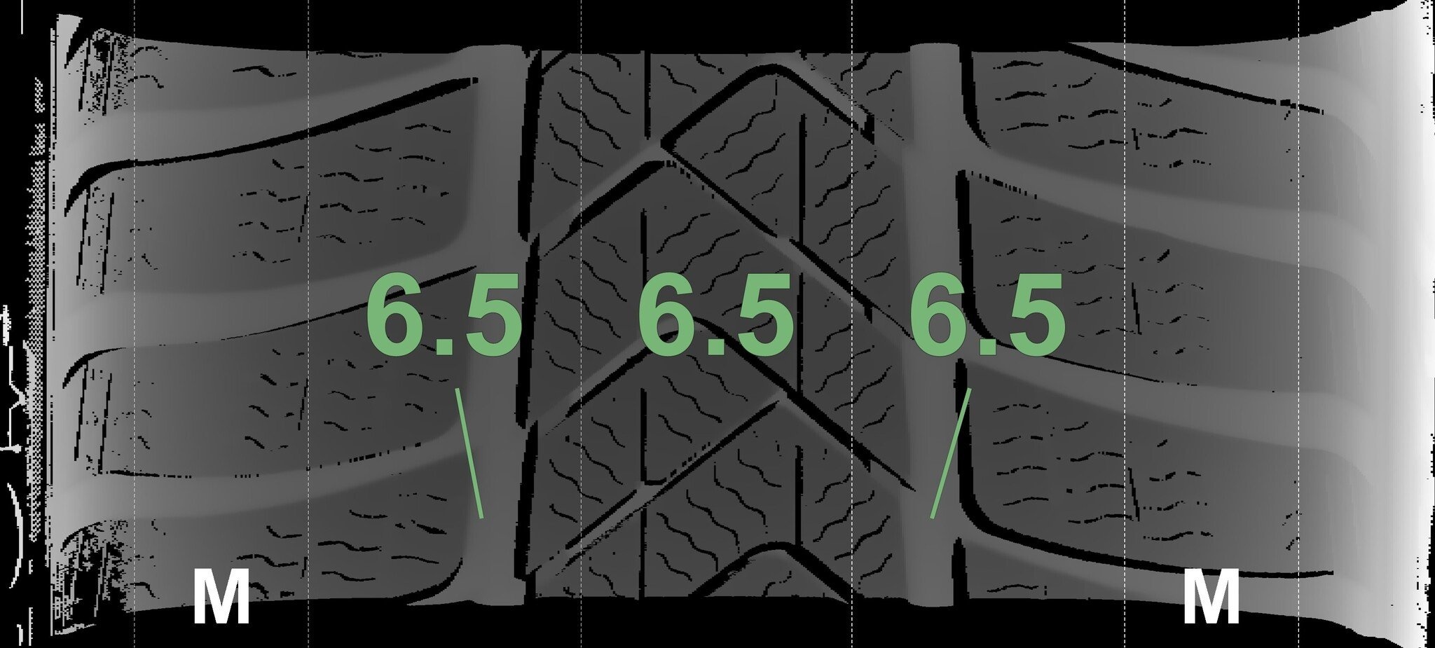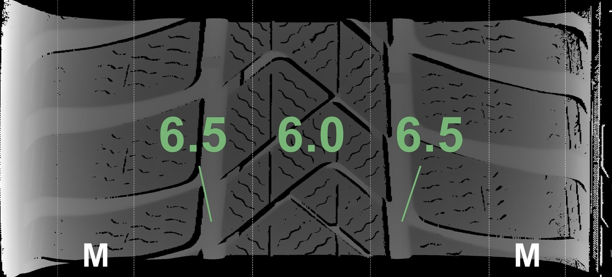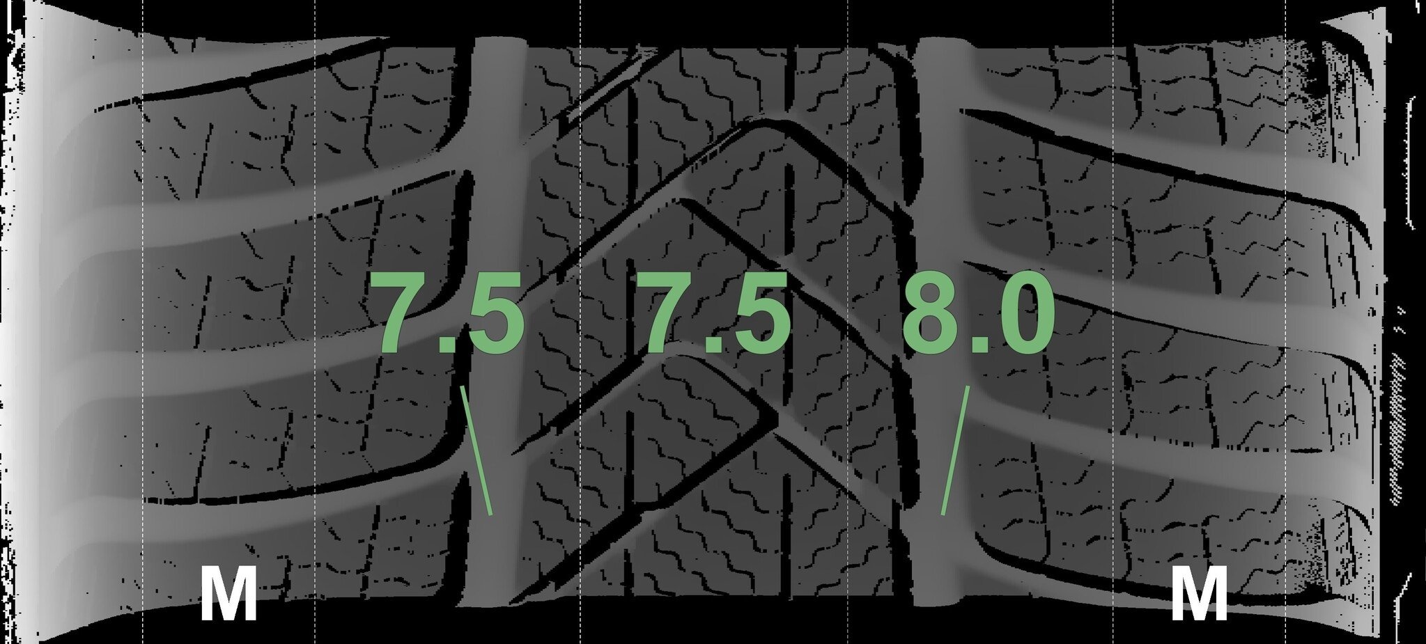 De gemeten profieldieptes en de details van de velgen zijn hierboven weergegeven.