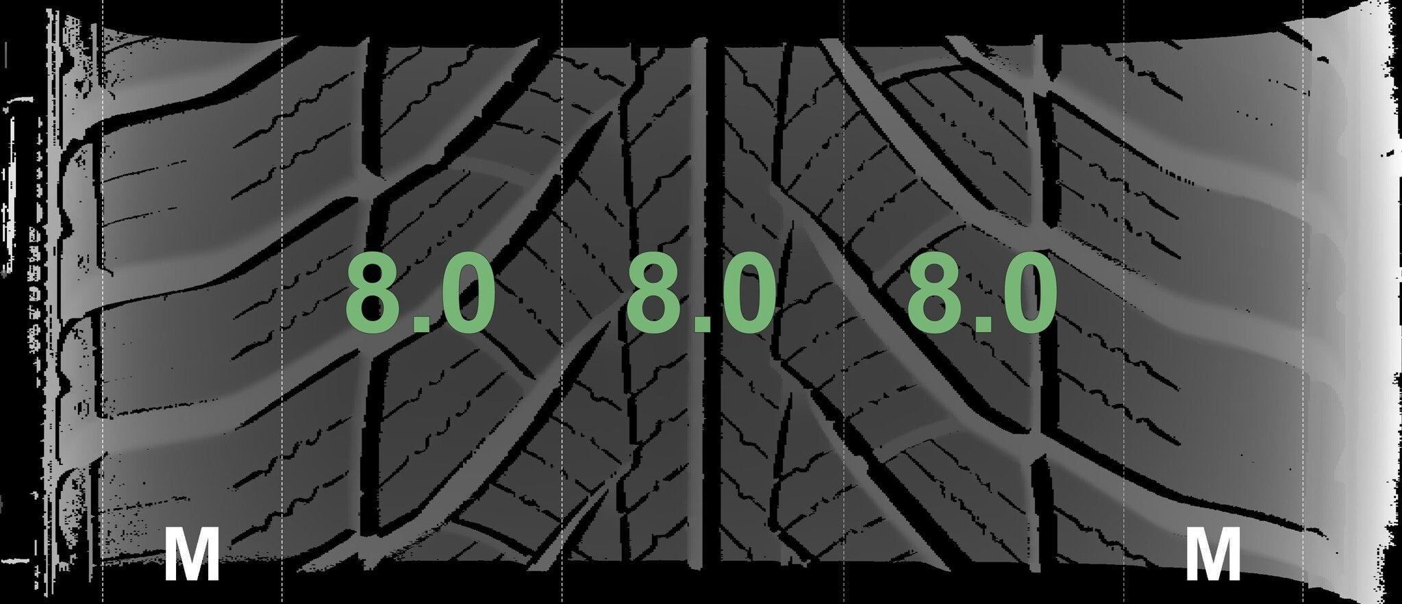 De gemeten profieldieptes en de details van de velgen zijn hierboven weergegeven.