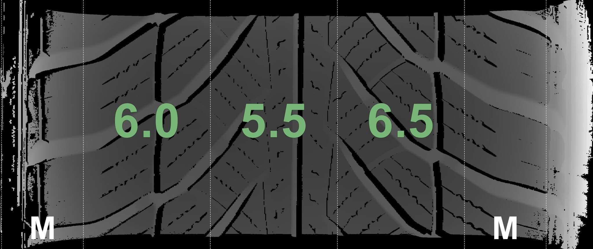 De gemeten profieldieptes en de details van de velgen zijn hierboven weergegeven.
