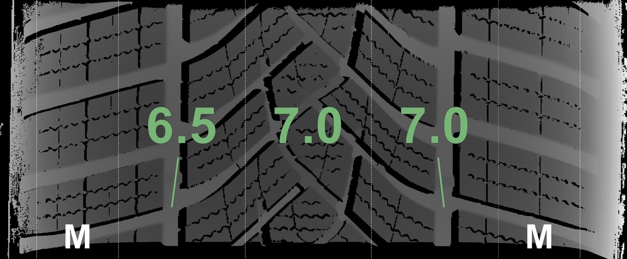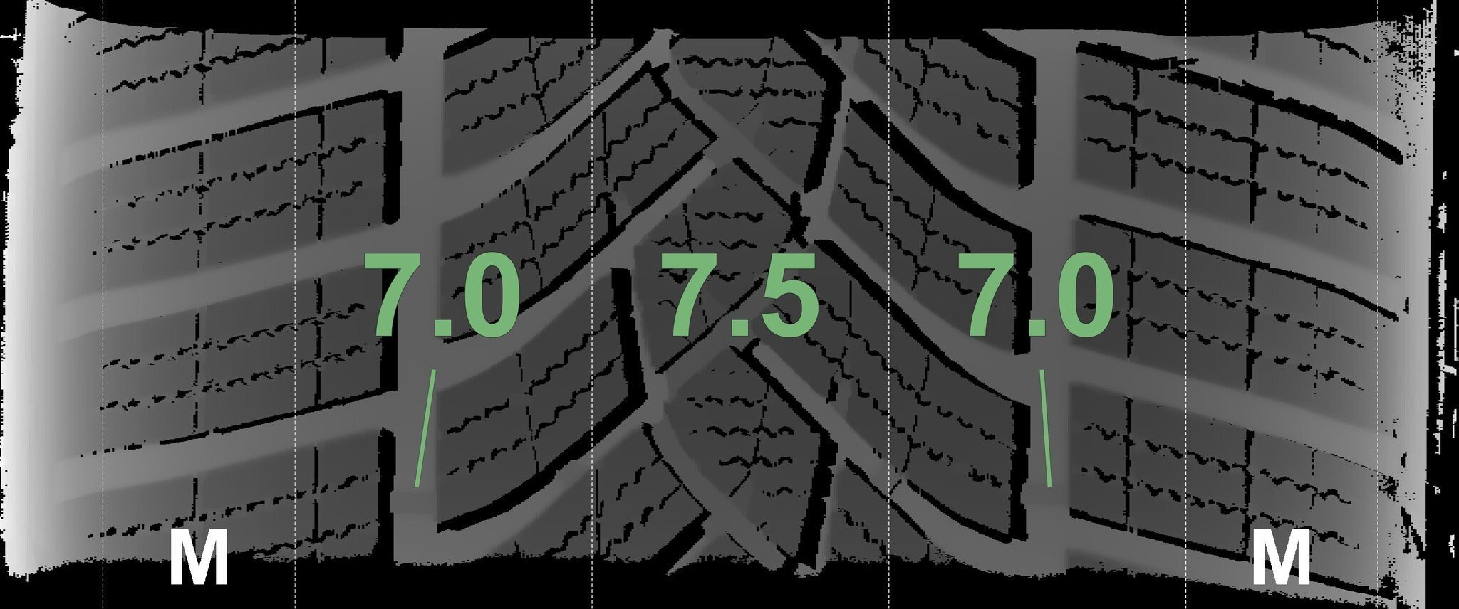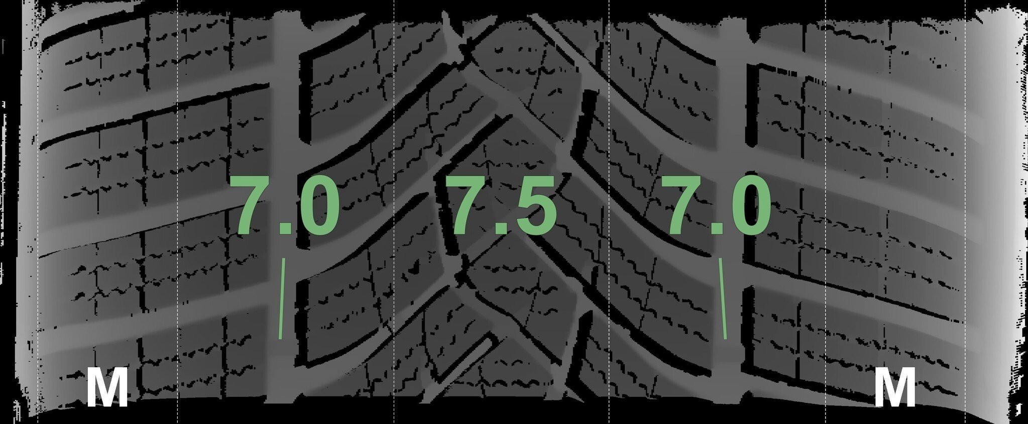 De gemeten profieldieptes en de details van de velgen zijn hierboven weergegeven.