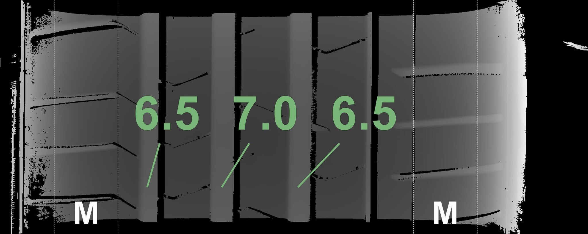 De gemeten profieldieptes en de details van de velgen zijn hierboven weergegeven.