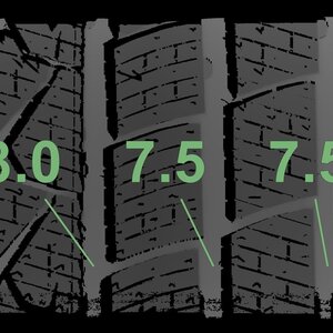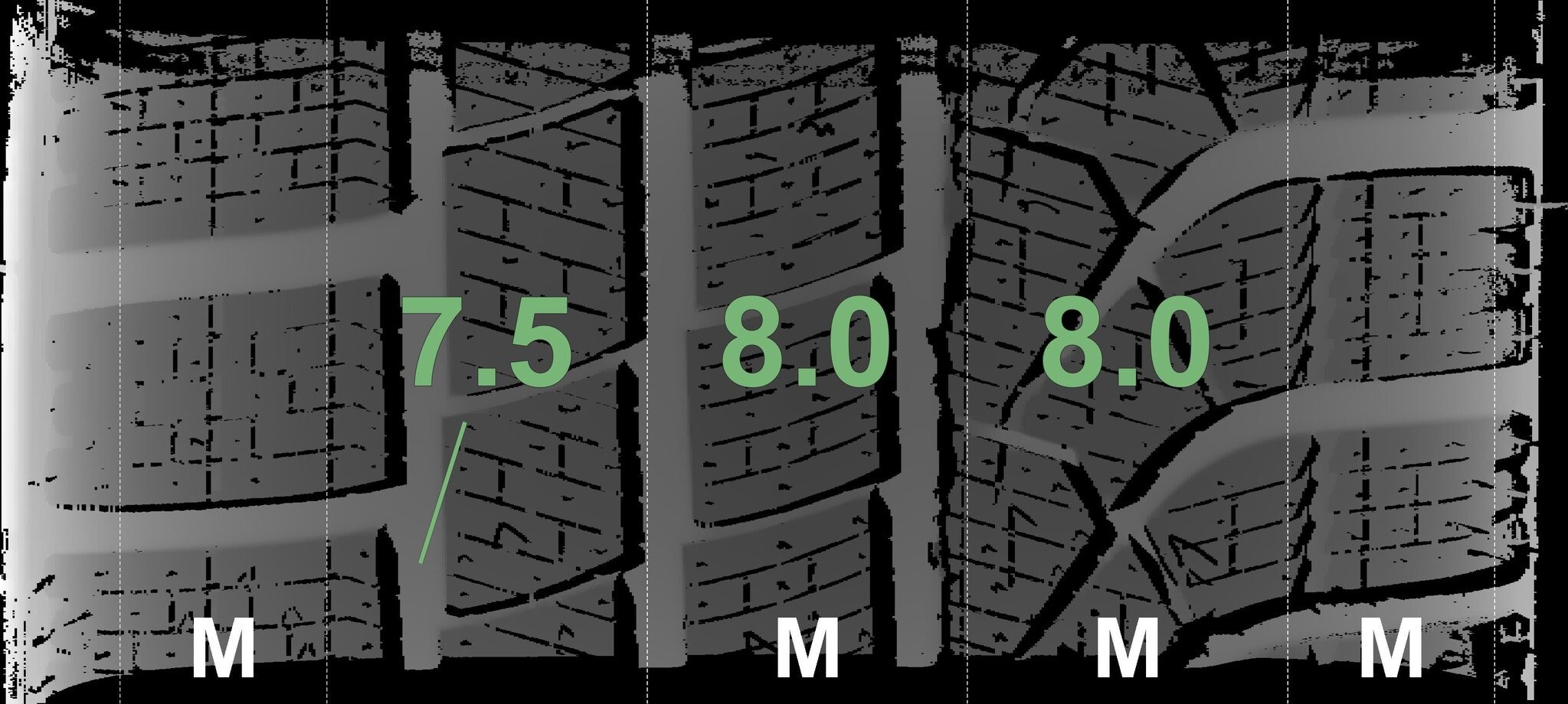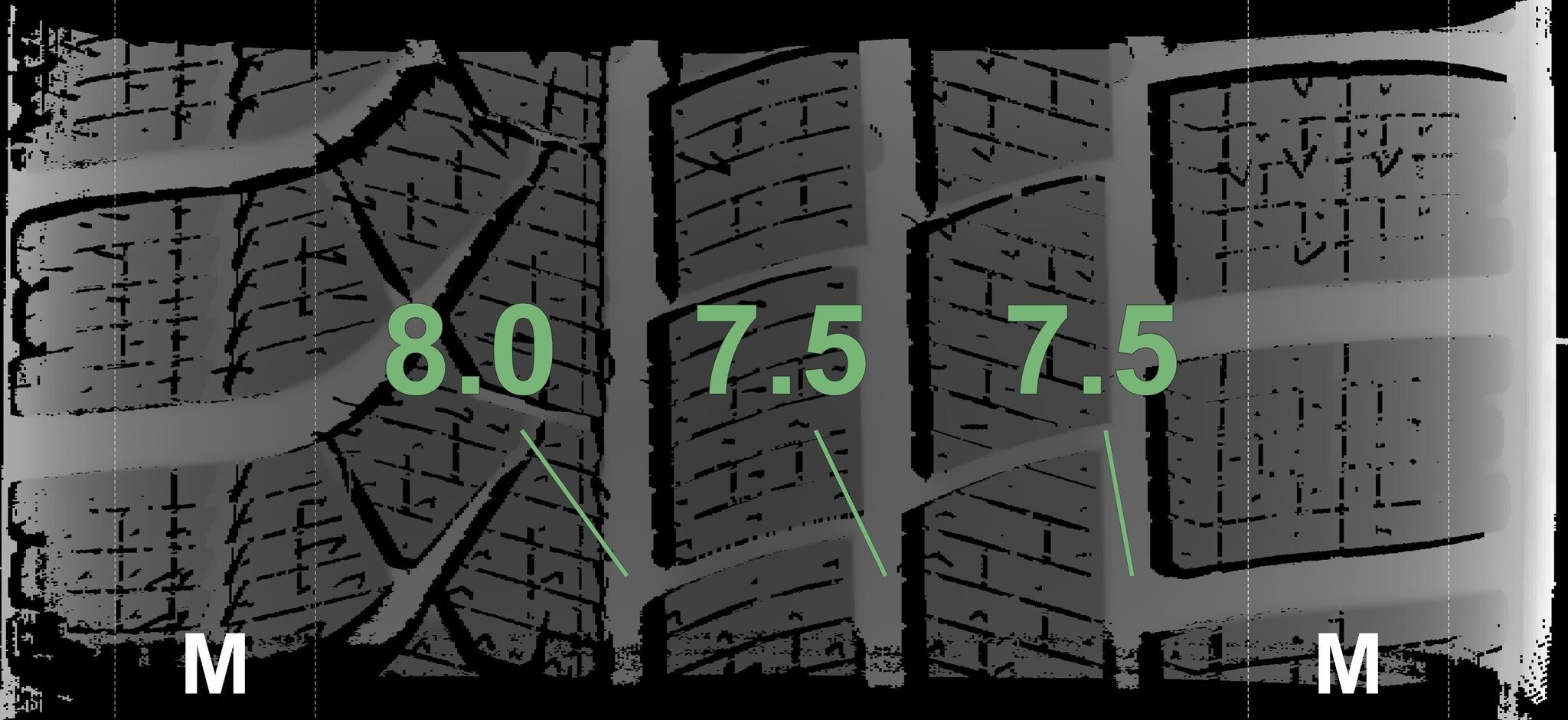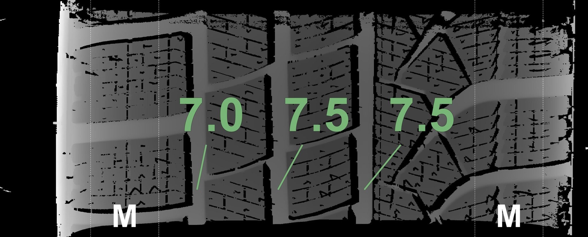 De gemeten profieldieptes en de details van de velgen zijn hierboven weergegeven.