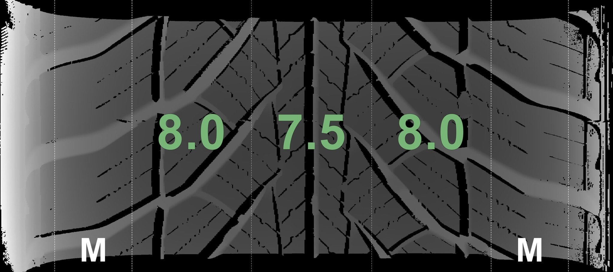 Conditie | Profieldiepte | DOT | Rechts Voor | Gebruikt | 8.0 mm | 2323 |