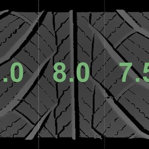 De gemeten profieldieptes en de details van de velgen zijn hierboven weergegeven.