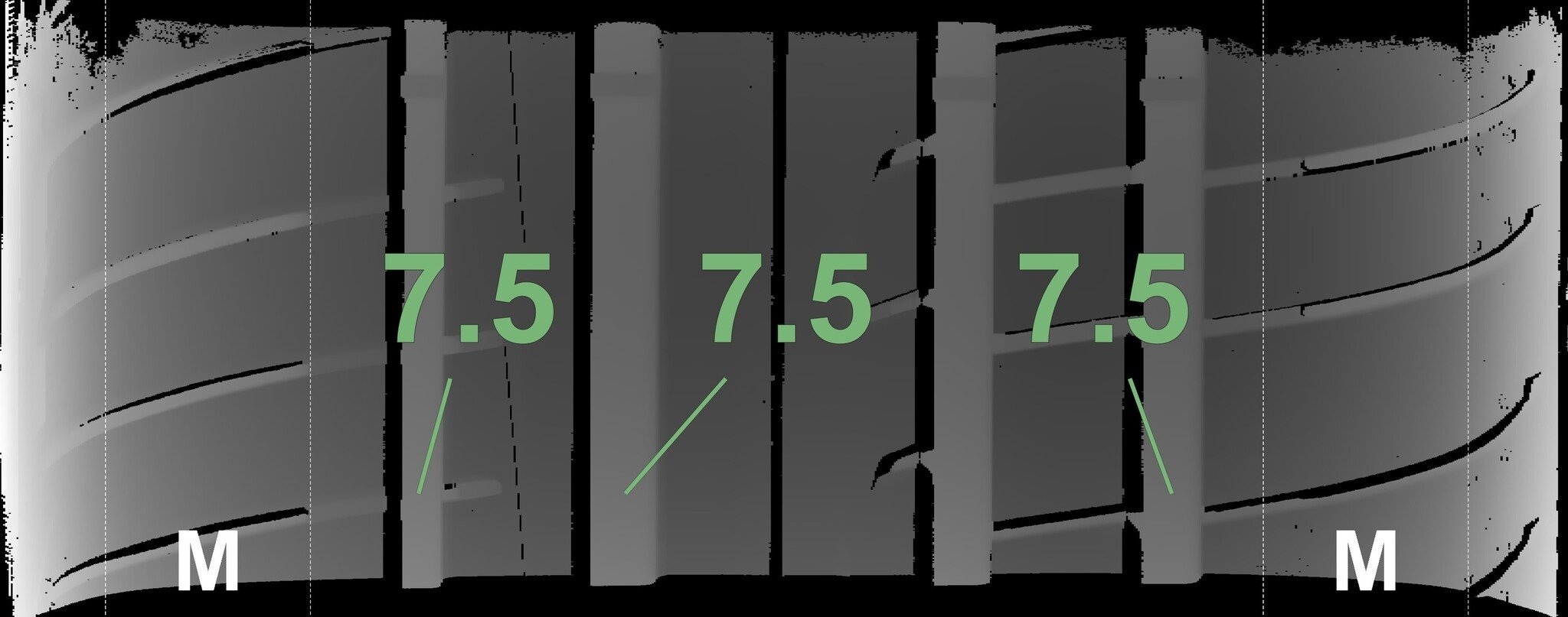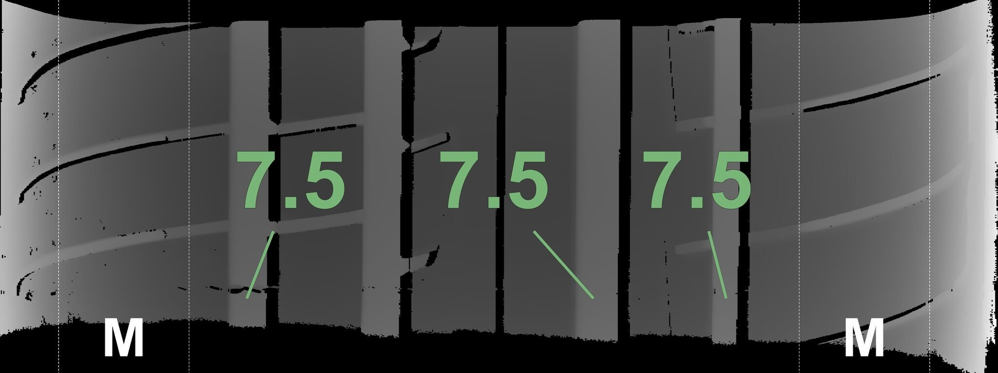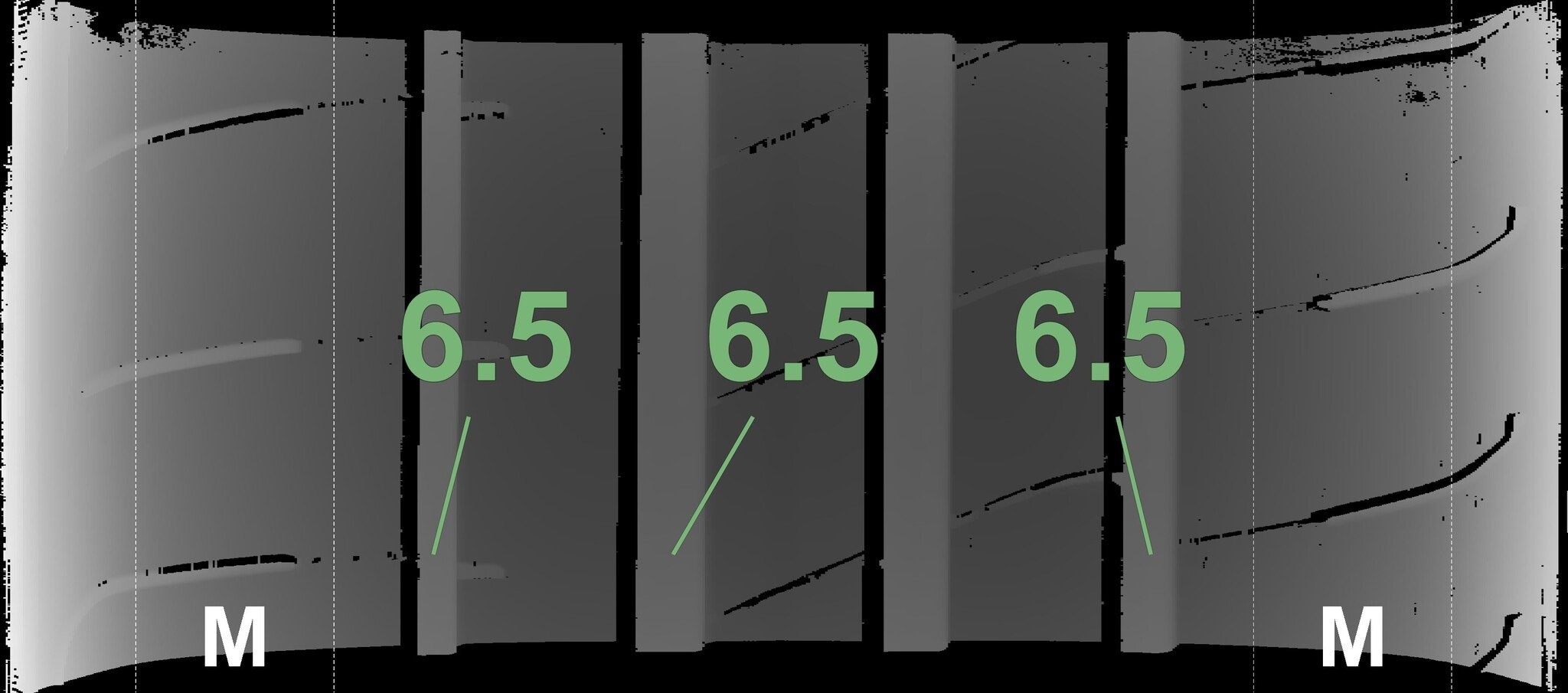 De gemeten profieldieptes en de details van de velgen zijn hierboven weergegeven.