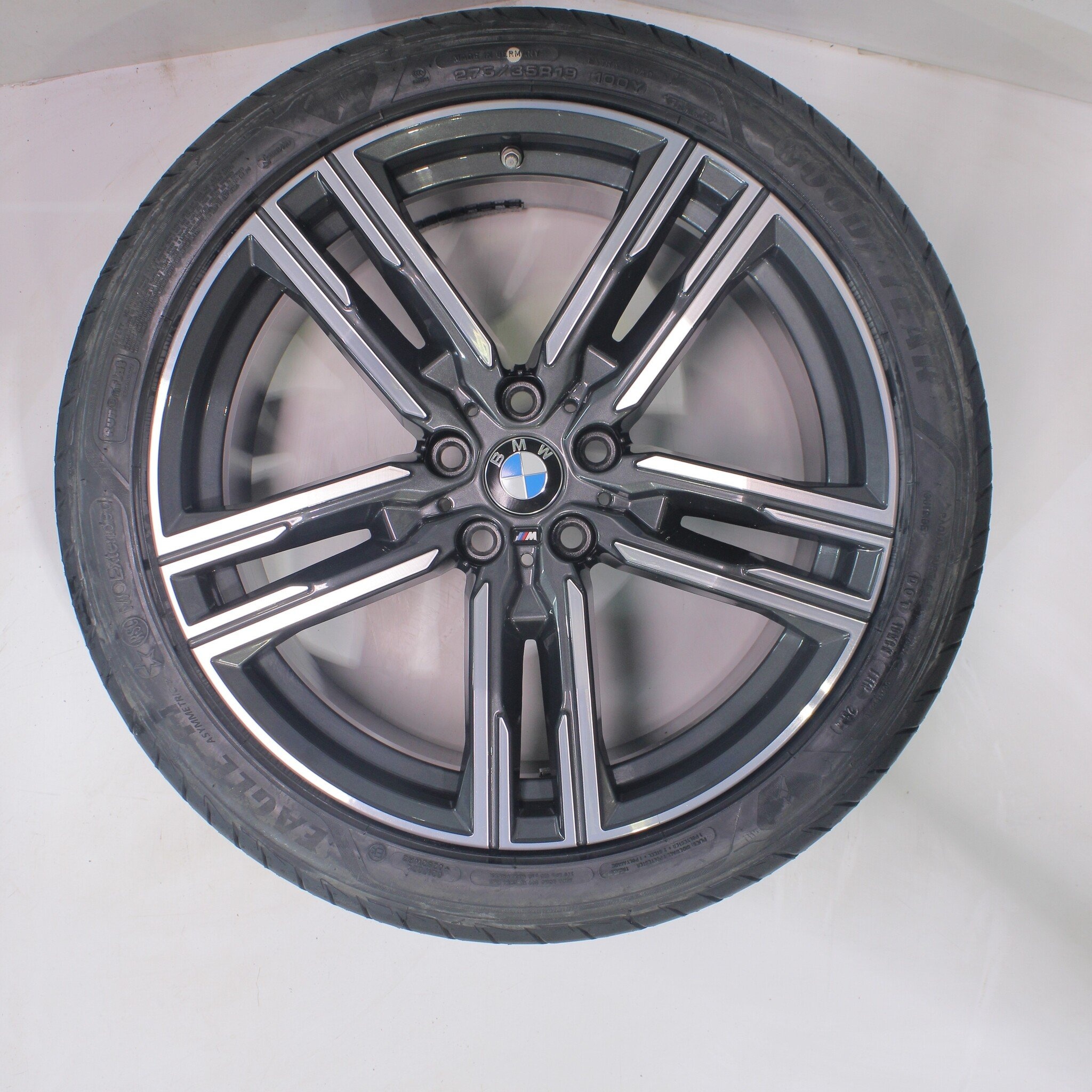 Originele wielset van BMW, styling 727M, 19 inch velgen met Goodyear Eagle F1 Asymmetric 3 Runflat Zomerbanden. Deze velgen zijn originele velgen van het merk BMW en geschikt voor: BMW 5 serie G30 G31 8 serie G14 G15 G16.