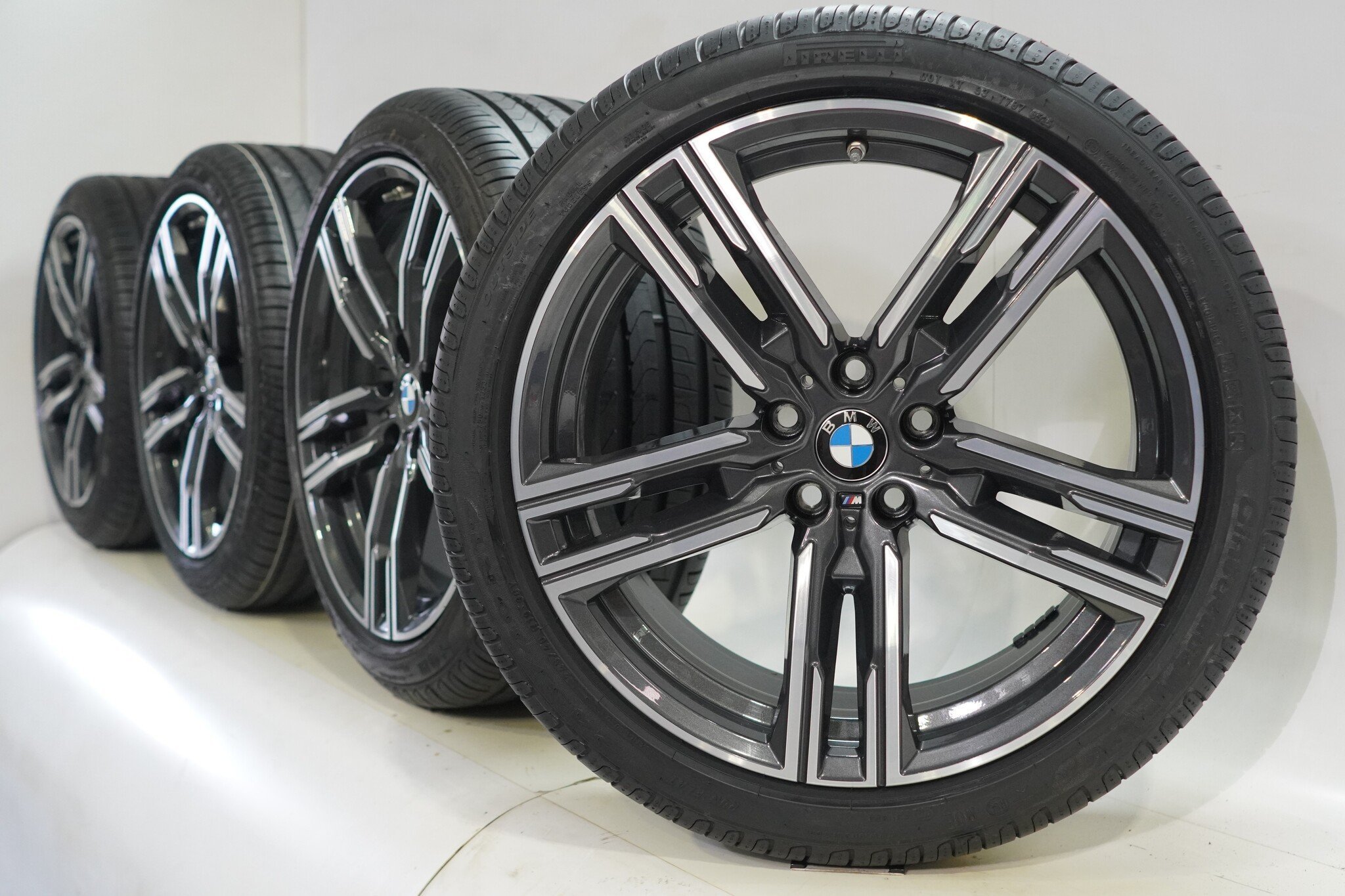 Originele wielset van BMW, styling 727M, 19 inch velgen met Pirelli Cinturato P7 Runflat Zomerbanden. Deze velgen zijn originele velgen van het merk BMW en geschikt voor: BMW 5 serie G30 G31 8 serie G14 G15 G16.