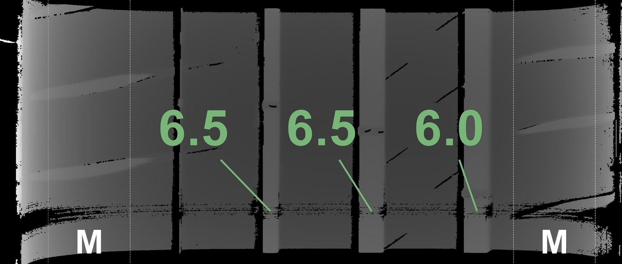 De gemeten profieldieptes en de details van de velgen zijn hierboven weergegeven.