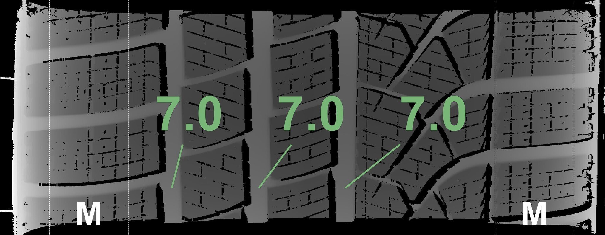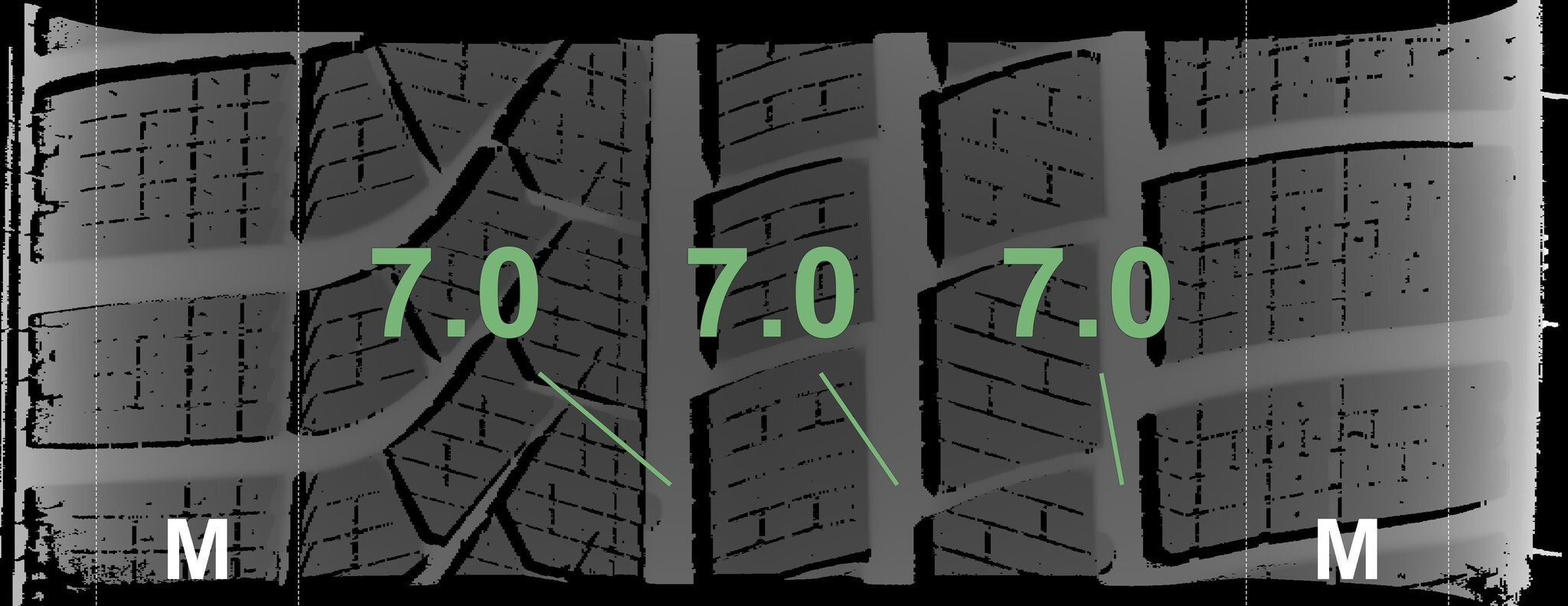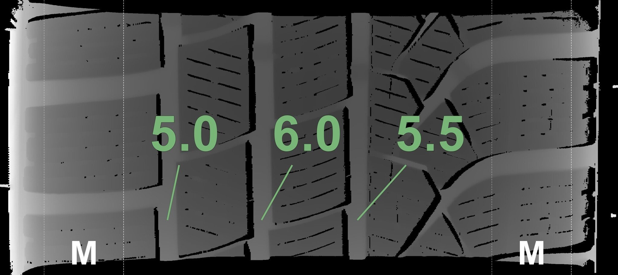 De gemeten profieldieptes en de details van de velgen zijn hierboven weergegeven.