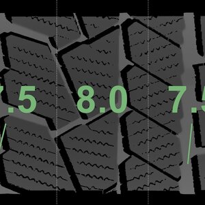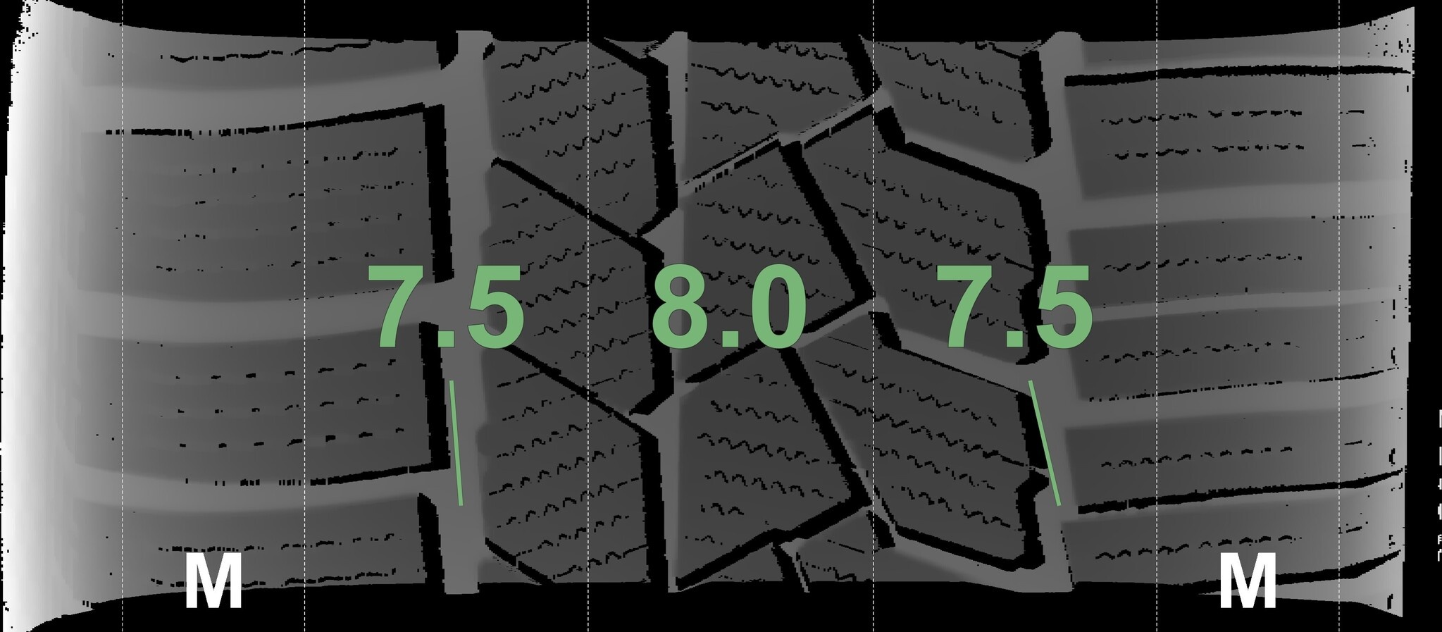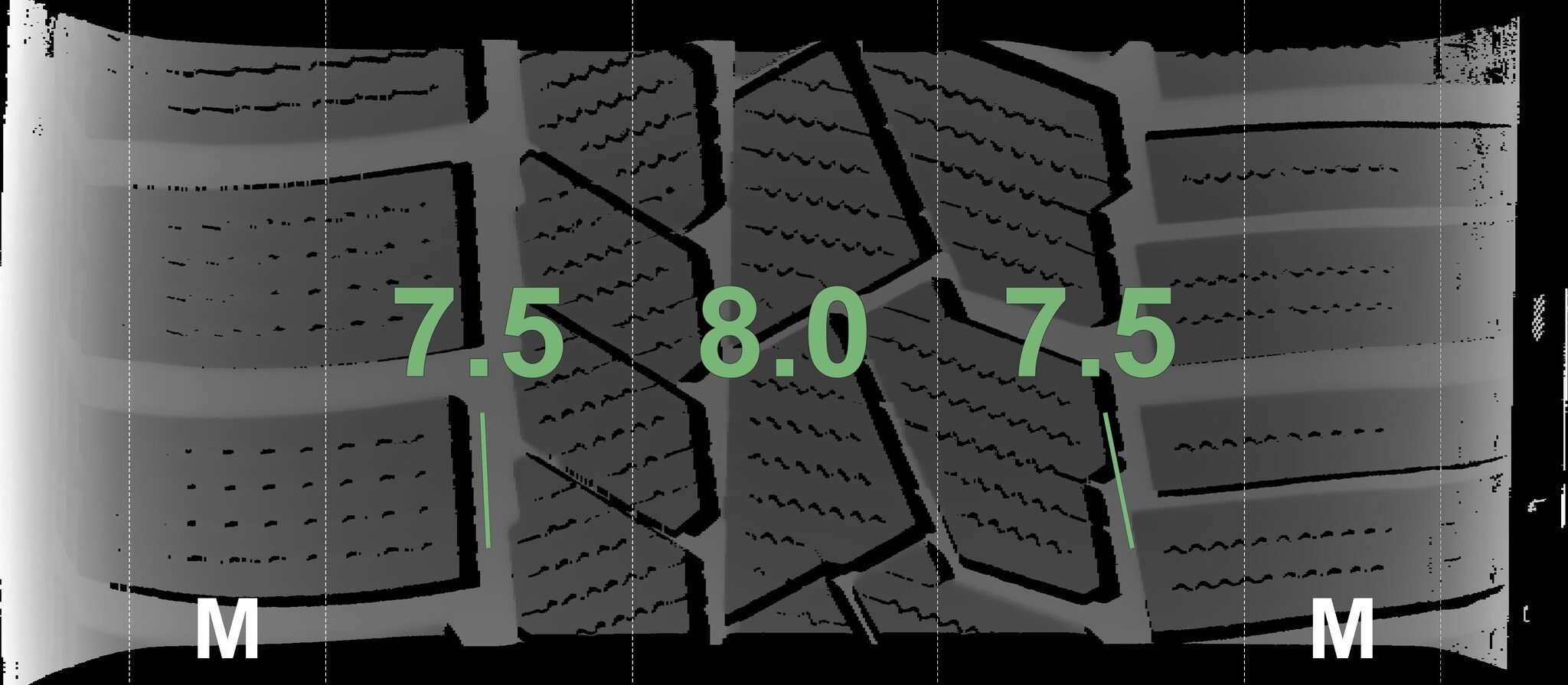 De gemeten profieldieptes en de details van de velgen zijn hierboven weergegeven.