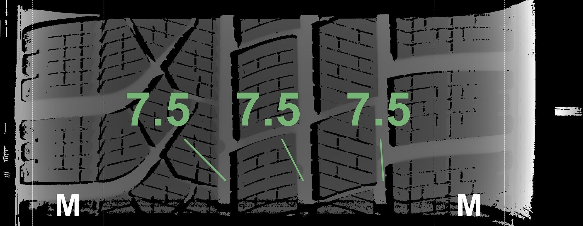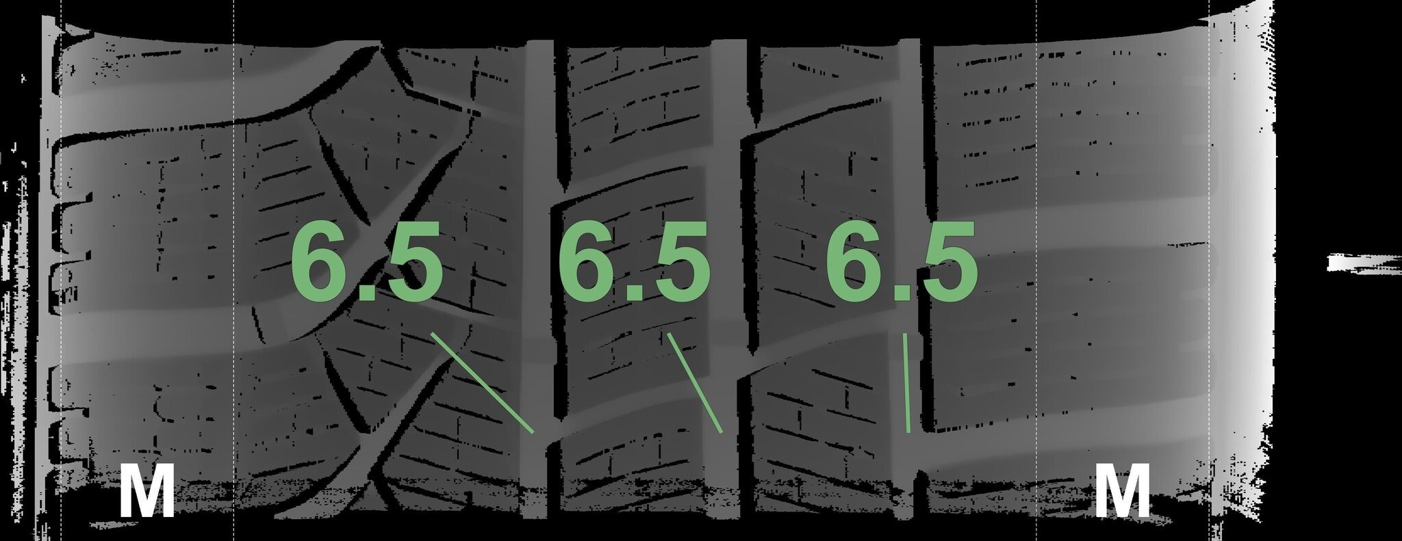 De gemeten profieldieptes en de details van de velgen zijn hierboven weergegeven.