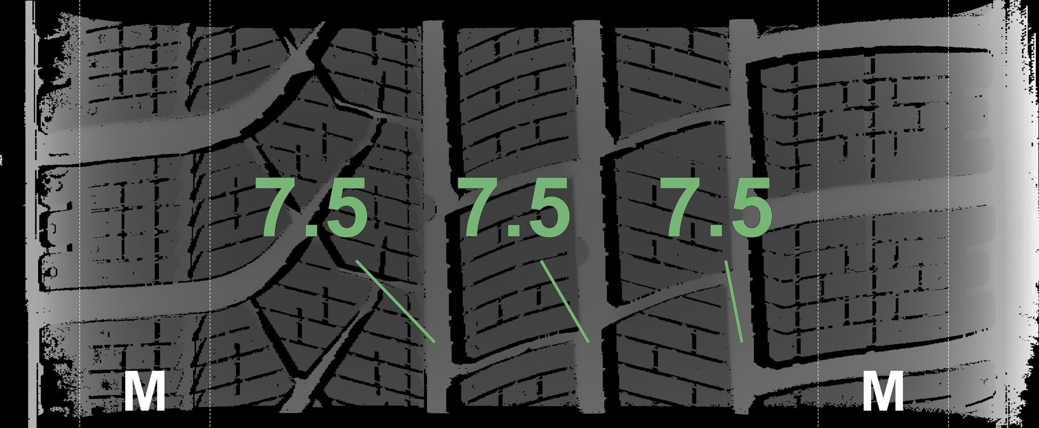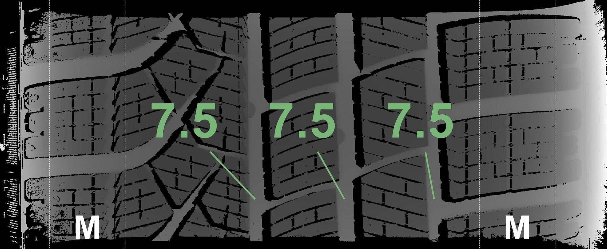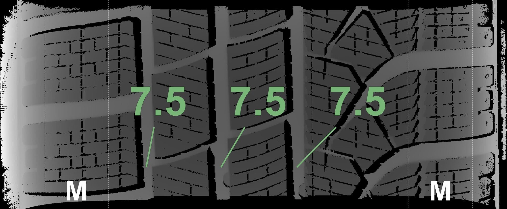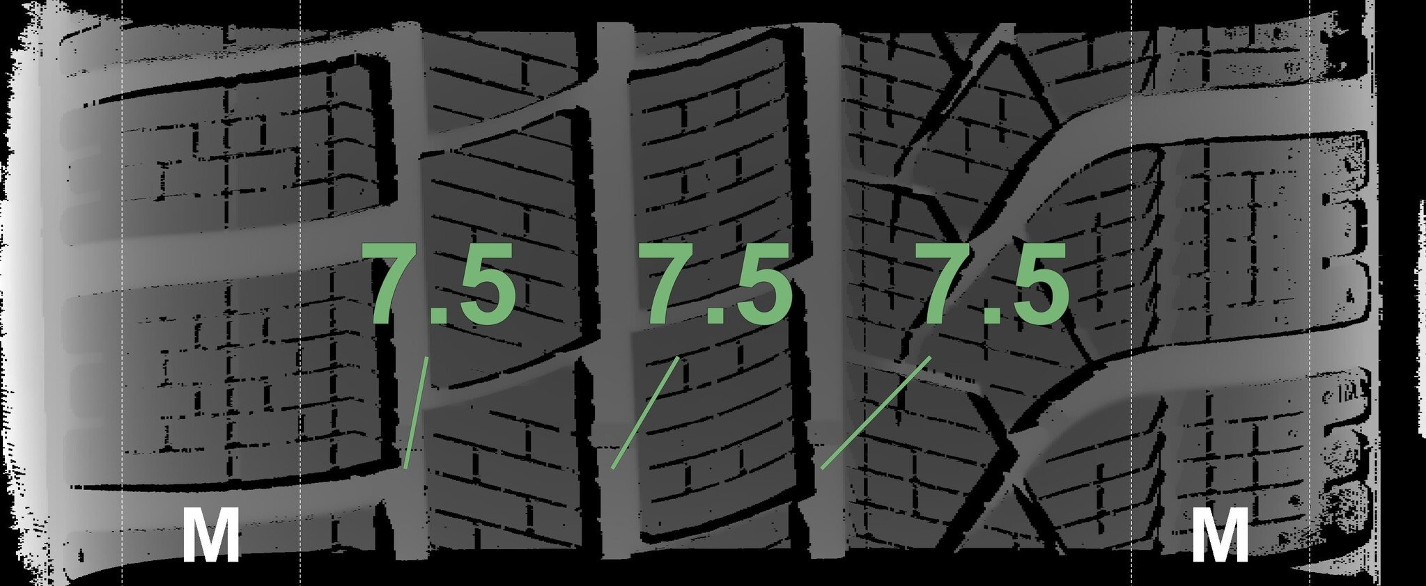 De gemeten profieldieptes en de details van de velgen zijn hierboven weergegeven.