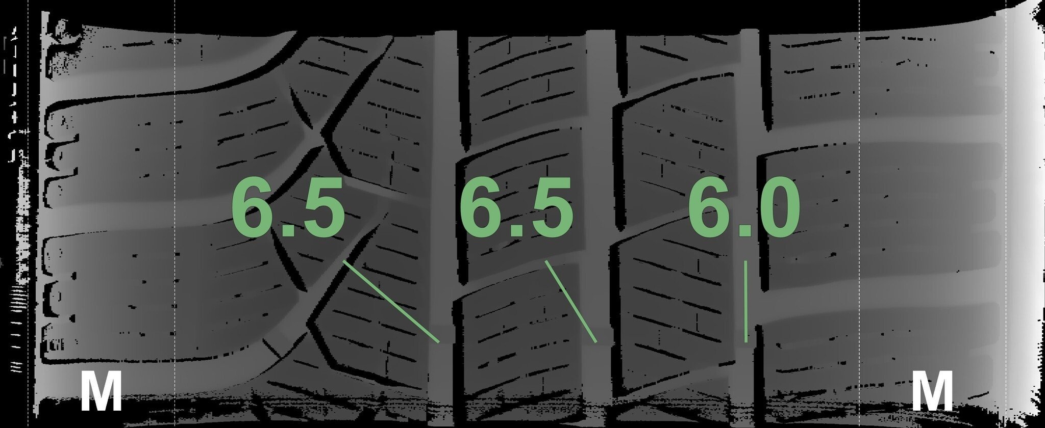 De gemeten profieldieptes en de details van de velgen zijn hierboven weergegeven.