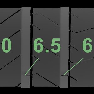 De gemeten profieldieptes en de details van de velgen zijn hierboven weergegeven.
