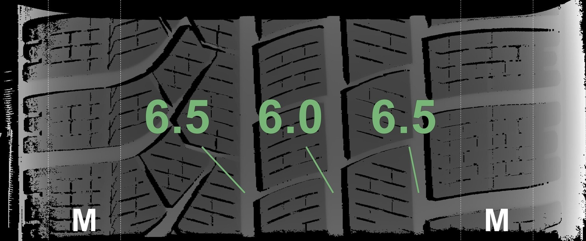 De gemeten profieldieptes en de details van de velgen zijn hierboven weergegeven.