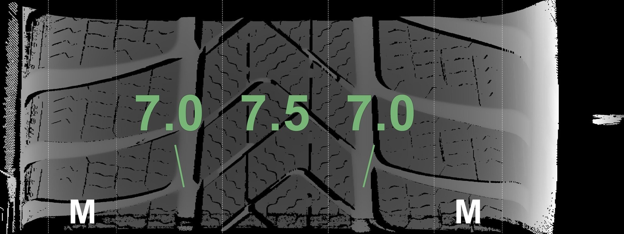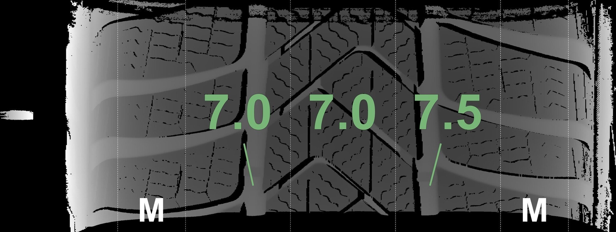 De gemeten profieldieptes en de details van de velgen zijn hierboven weergegeven.