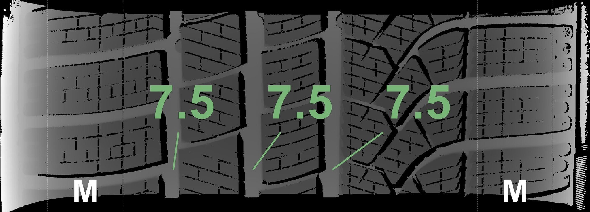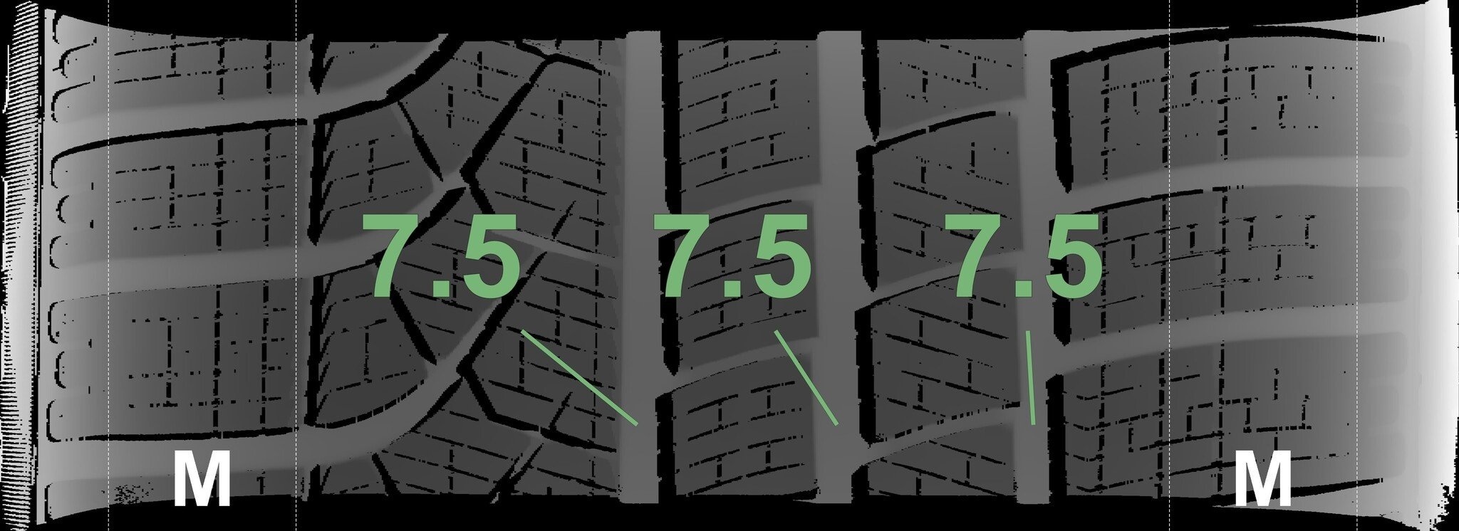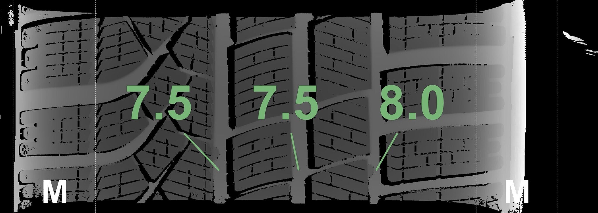 De gemeten profieldieptes en de details van de velgen zijn hierboven weergegeven.