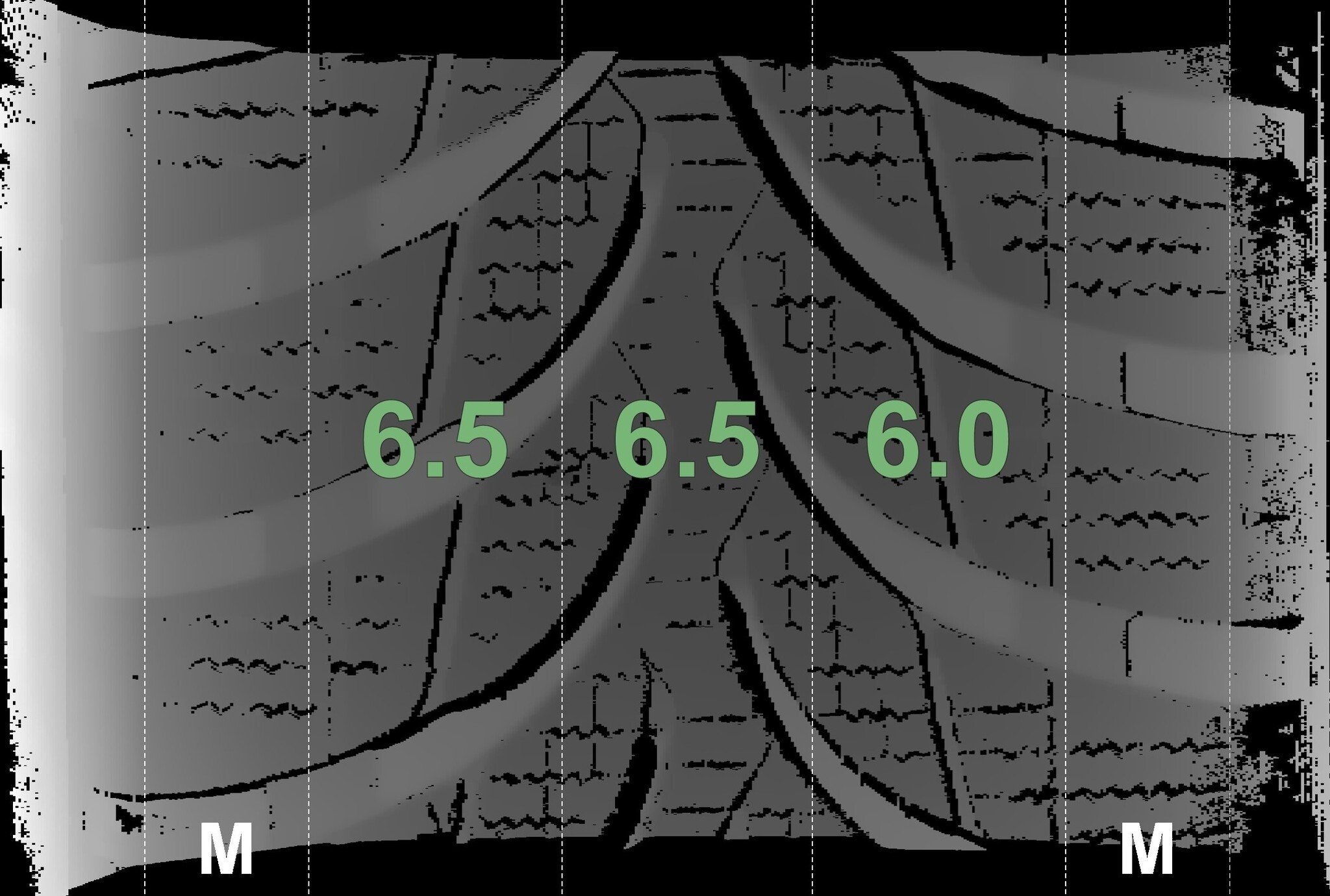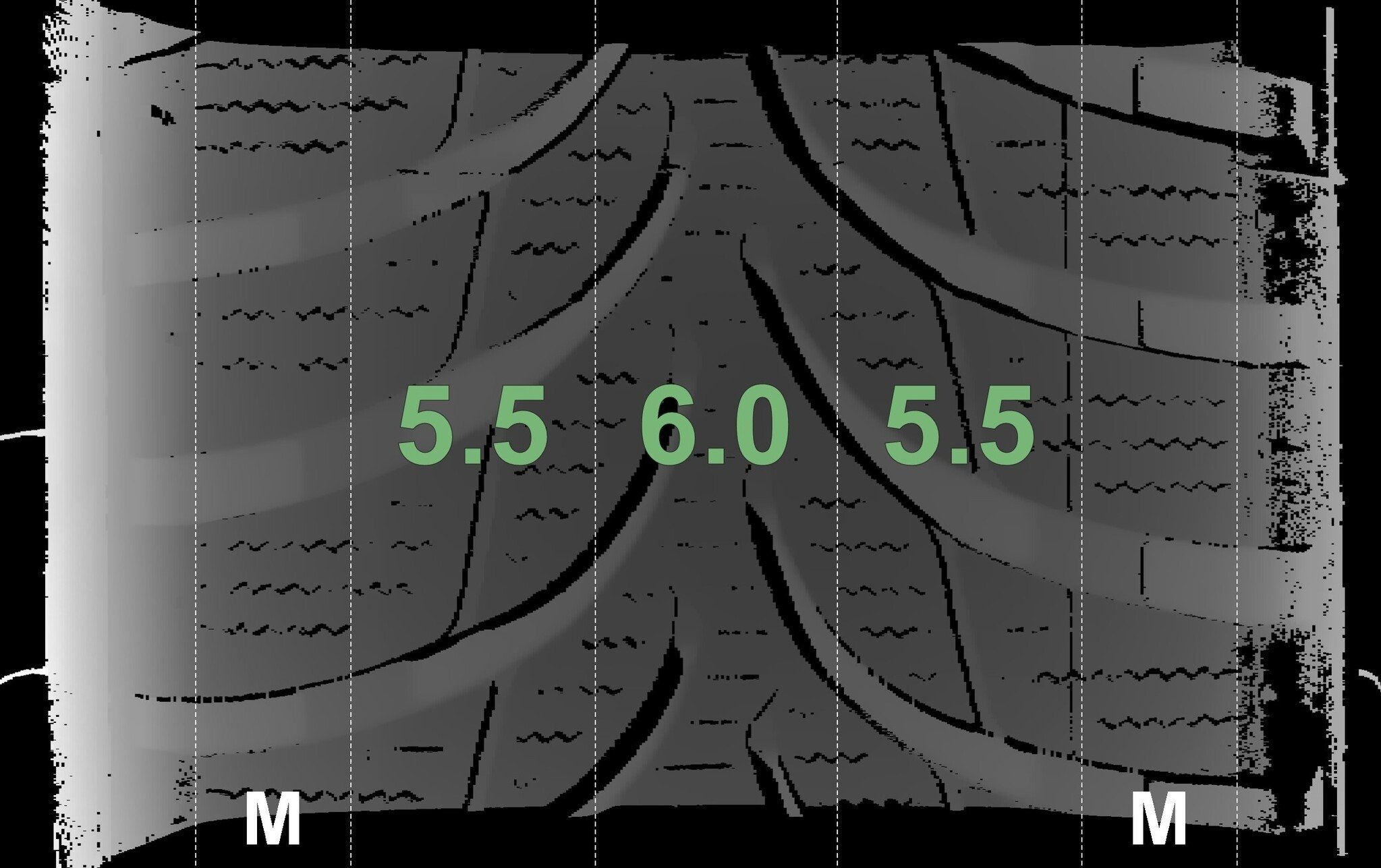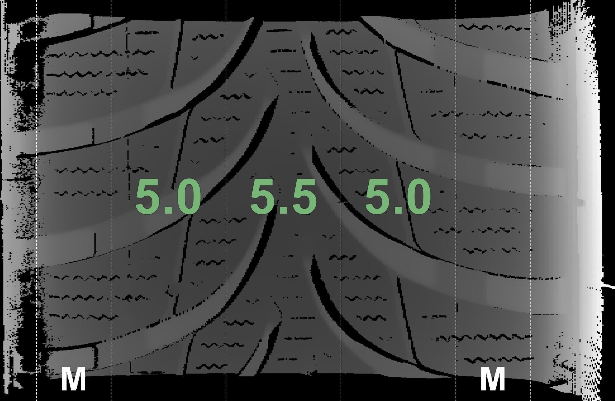 De gemeten profieldieptes en de details van de velgen zijn hierboven weergegeven.