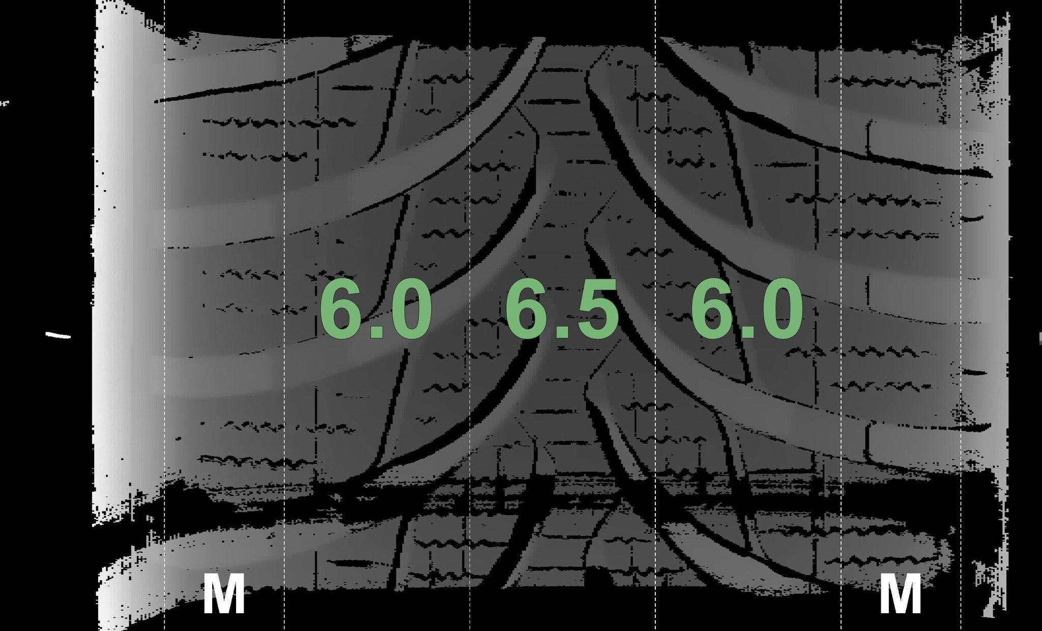 De gemeten profieldieptes en de details van de velgen zijn hierboven weergegeven.