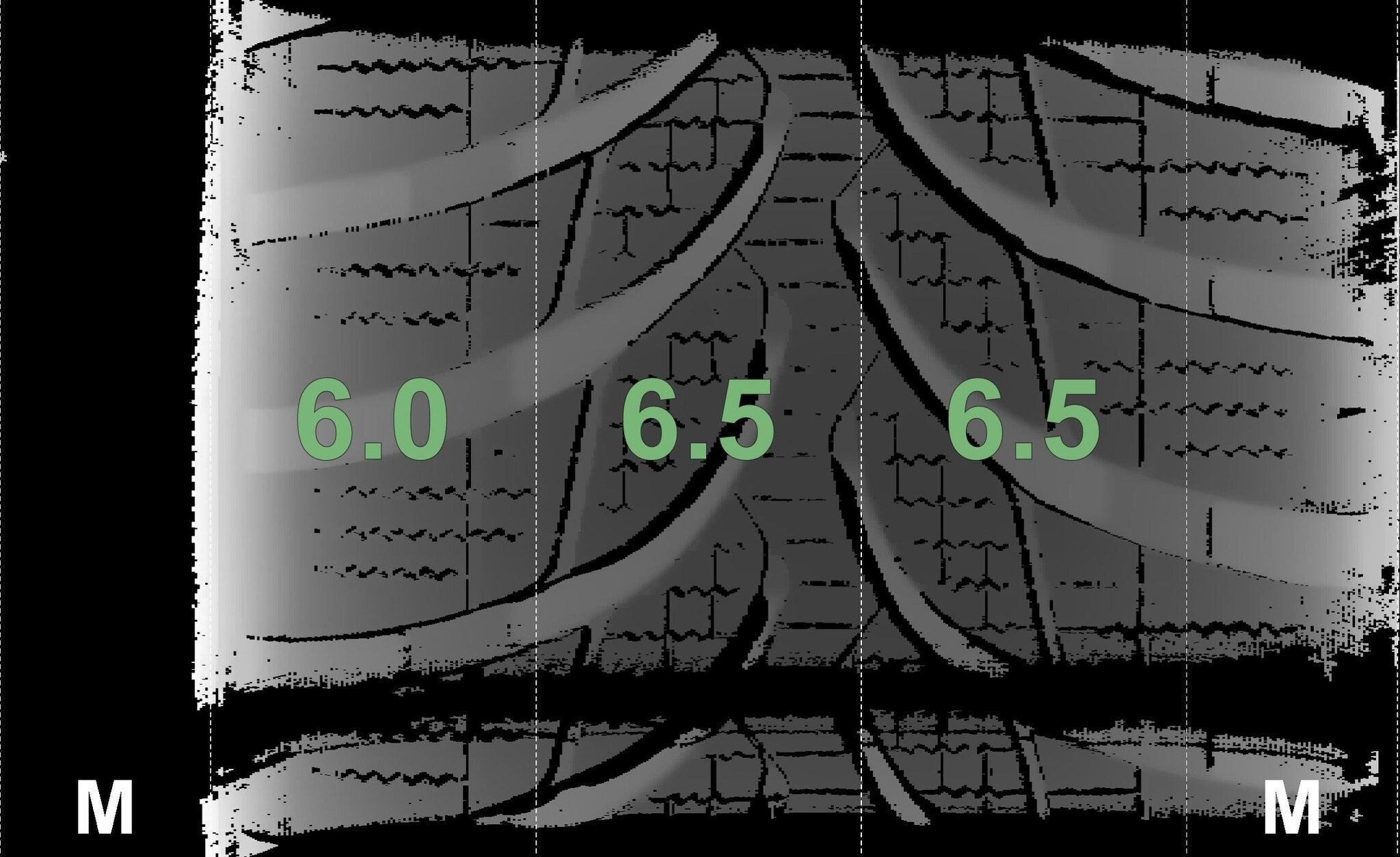 De gemeten profieldieptes en de details van de velgen zijn hierboven weergegeven.