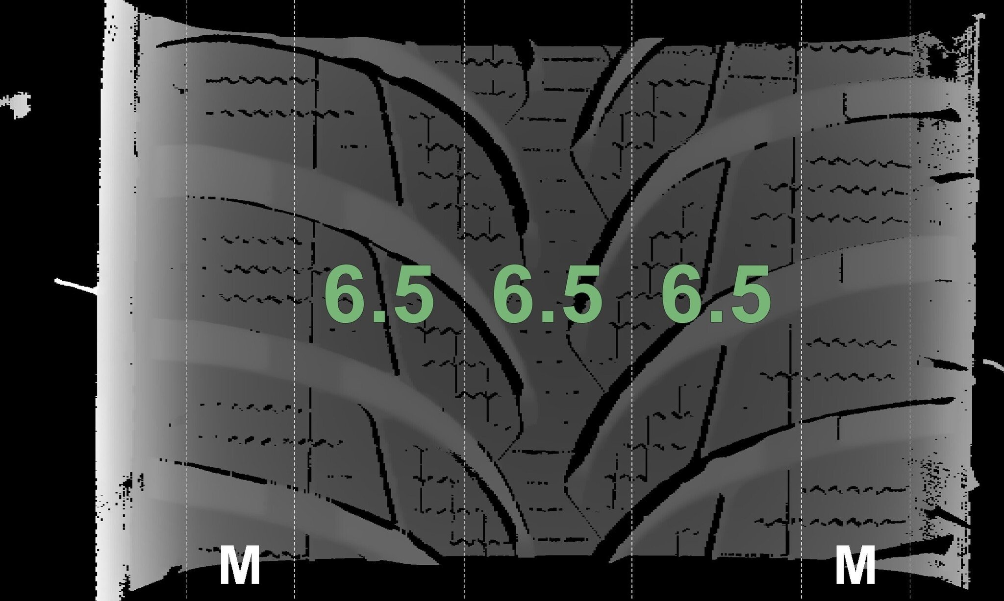 De gemeten profieldieptes en de details van de velgen zijn hierboven weergegeven.