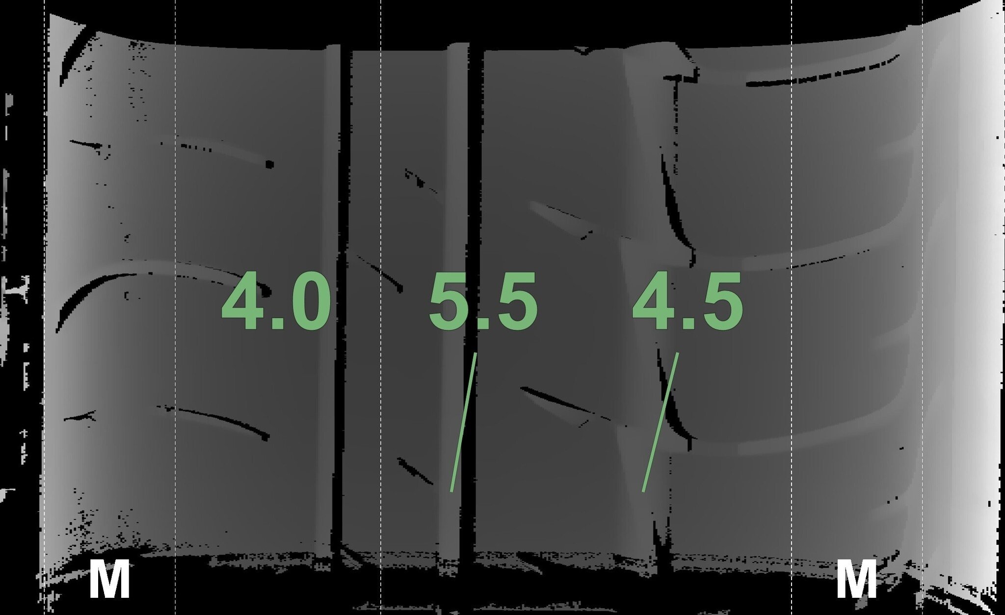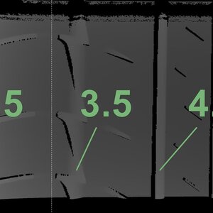 De gemeten profieldieptes en de details van de velgen zijn hierboven weergegeven.