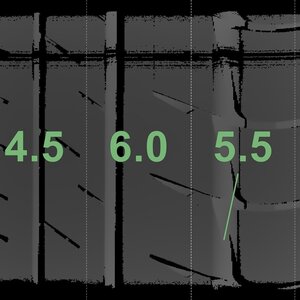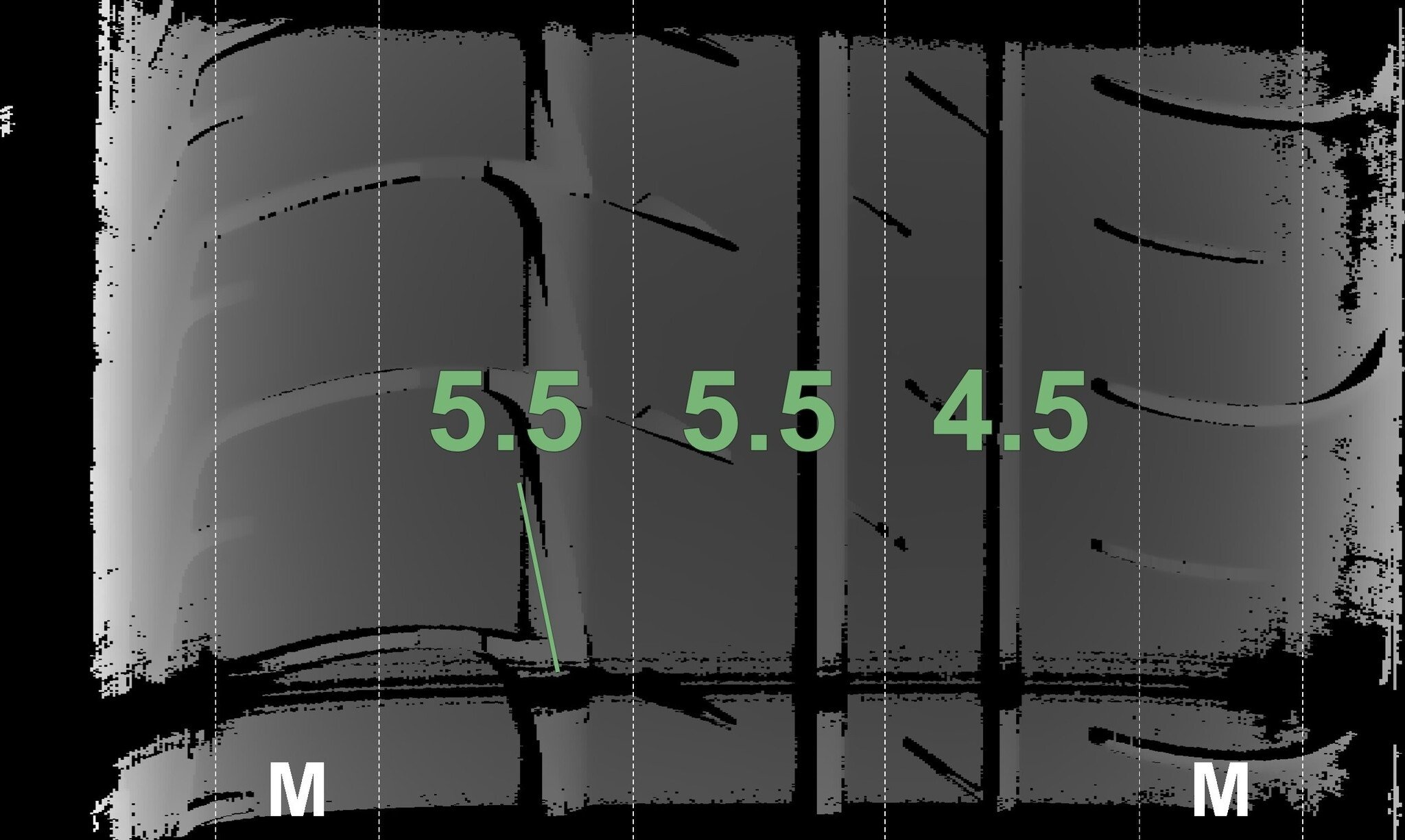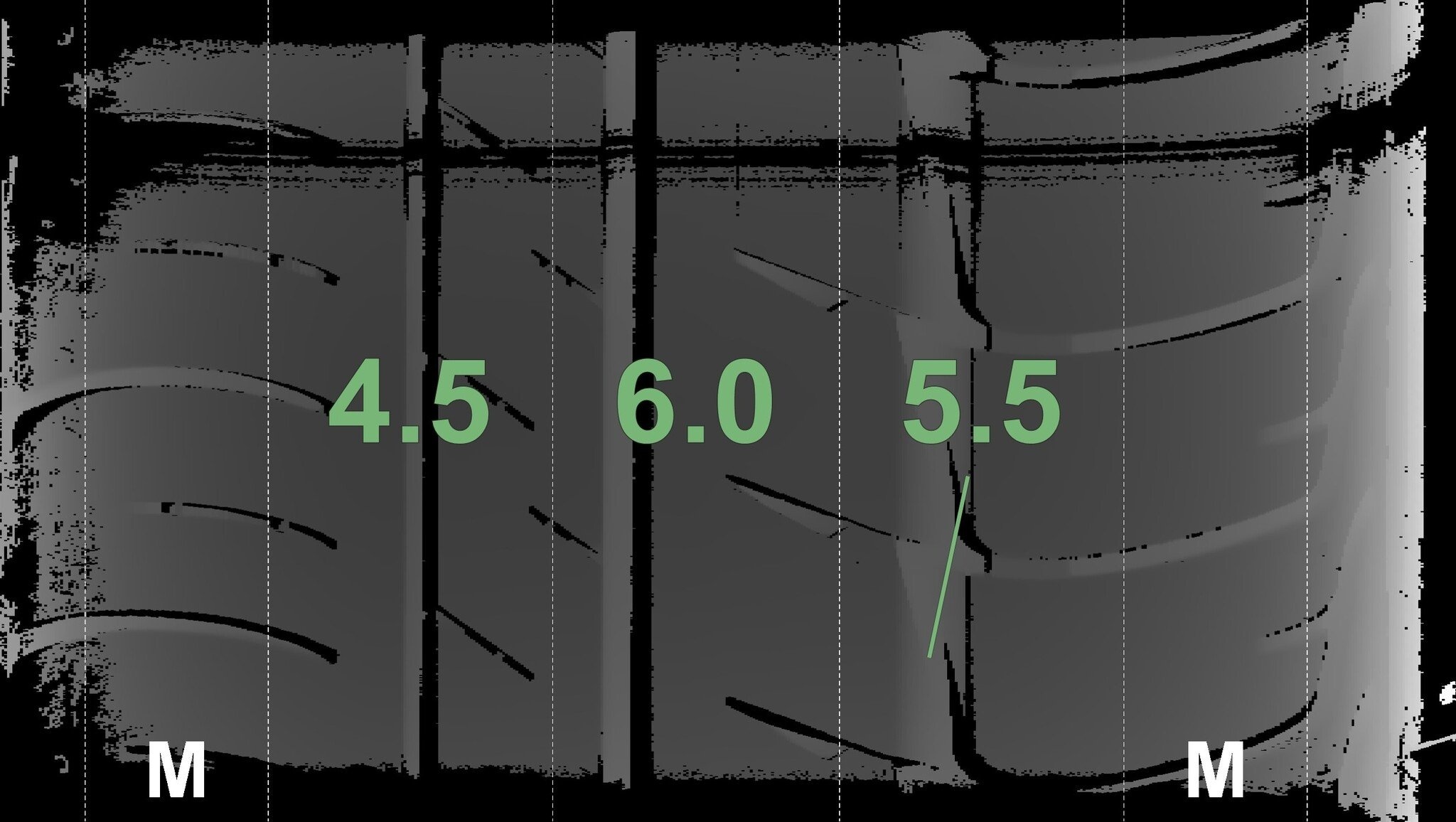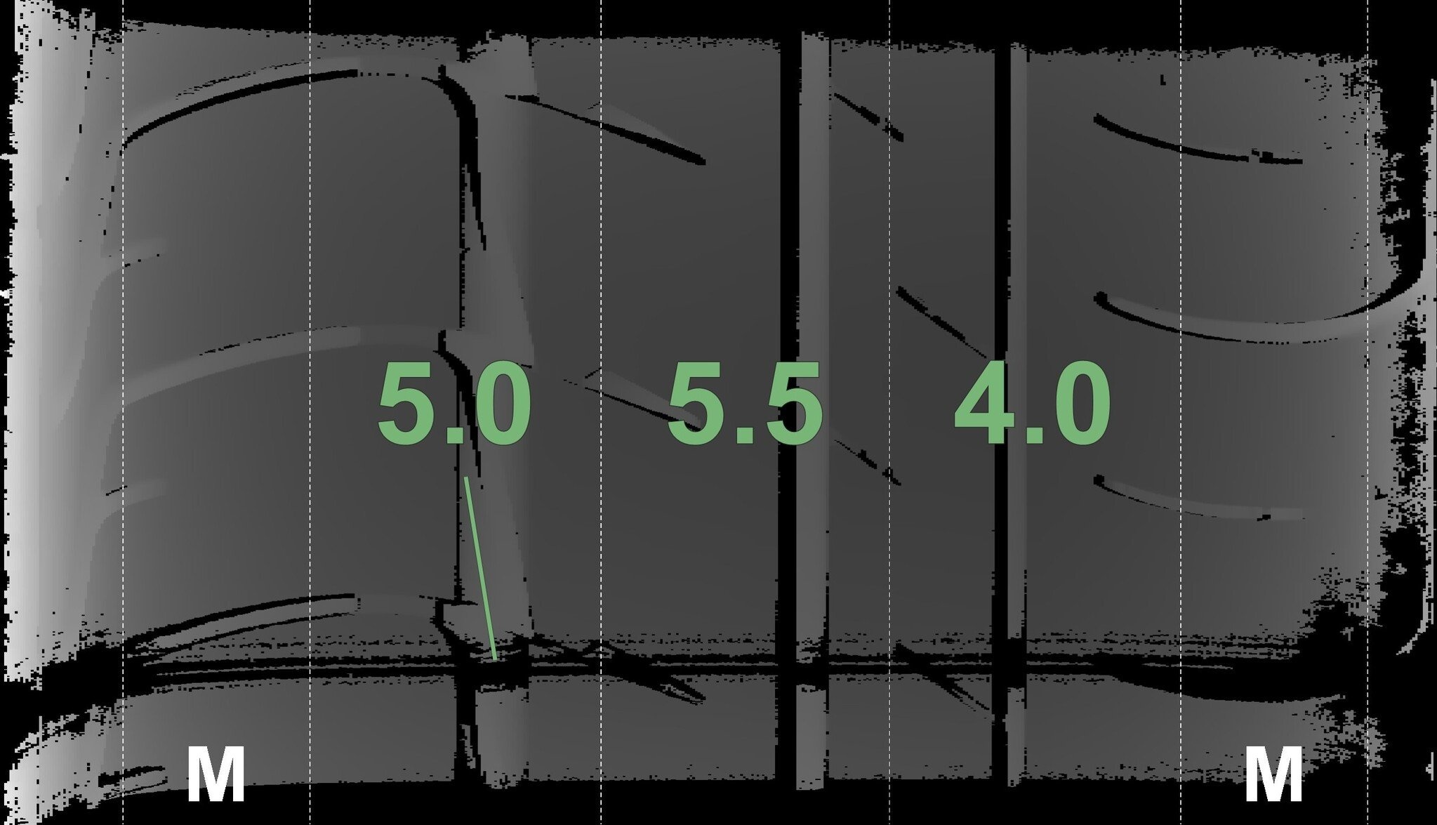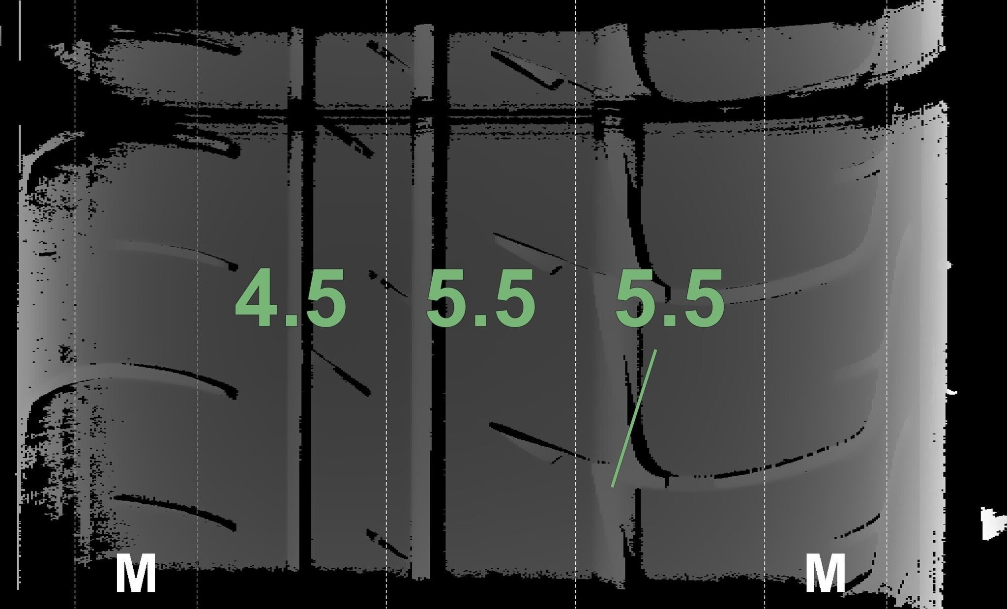 De gemeten profieldieptes en de details van de velgen zijn hierboven weergegeven.