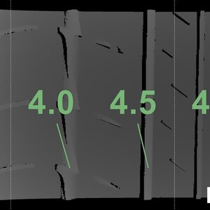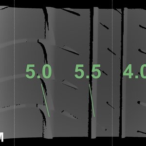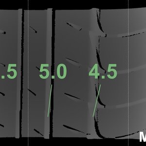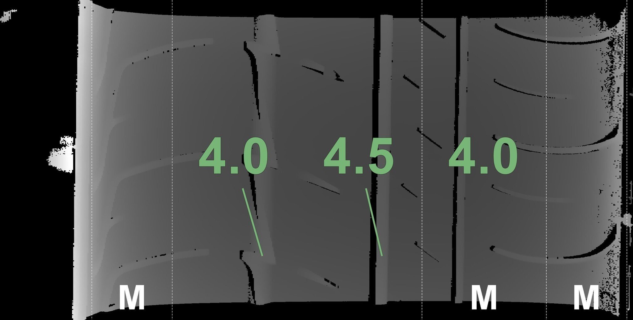De gemeten profieldieptes en de details van de velgen zijn hierboven weergegeven.