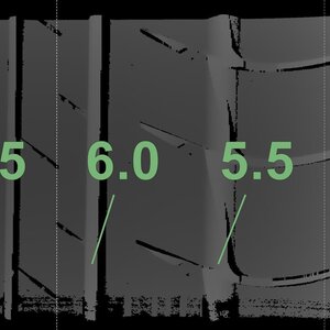 De gemeten profieldieptes en de details van de velgen zijn hierboven weergegeven.