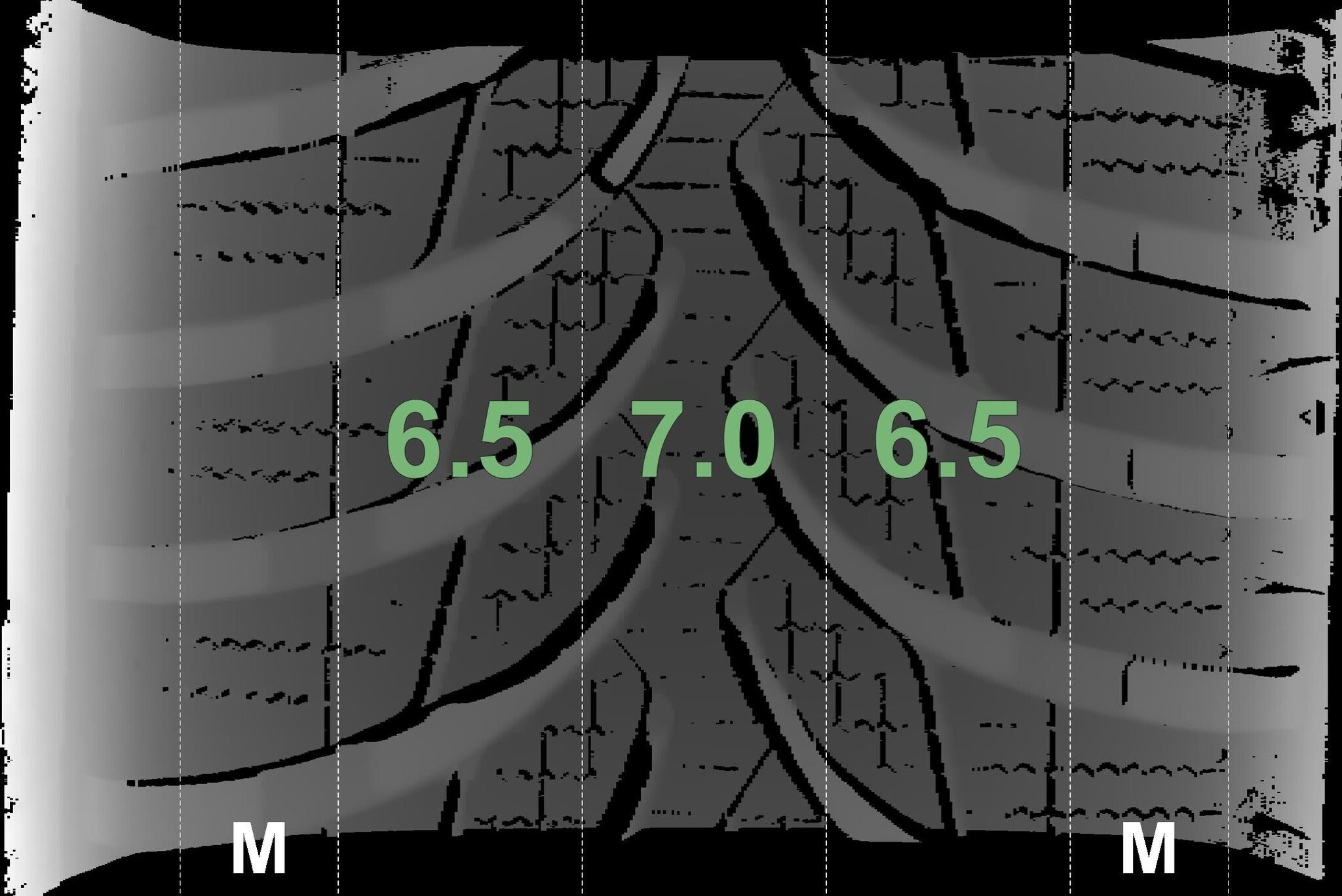 De gemeten profieldieptes en de details van de velgen zijn hierboven weergegeven.