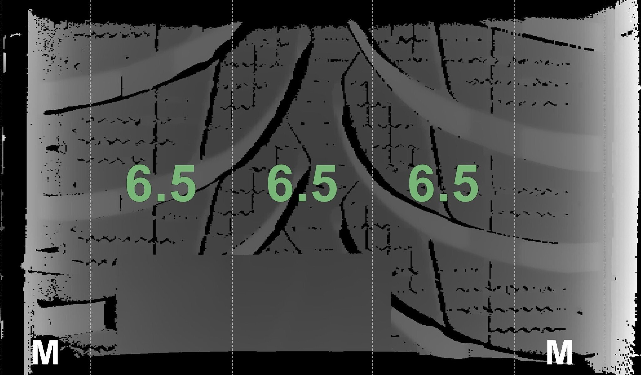 De gemeten profieldieptes en de details van de velgen zijn hierboven weergegeven.