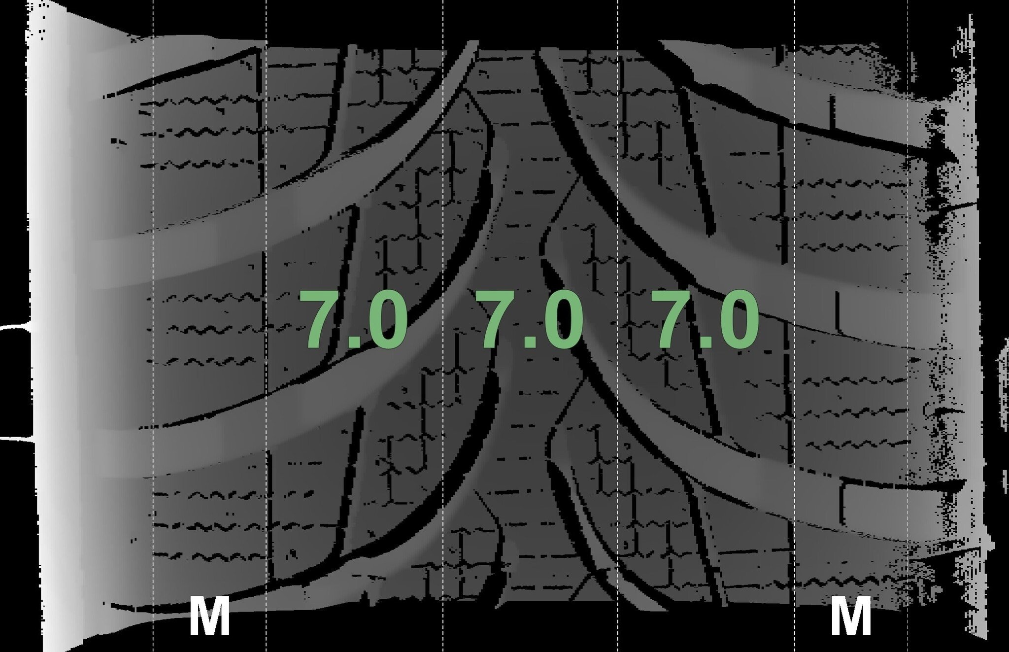 De gemeten profieldieptes en de details van de velgen zijn hierboven weergegeven.