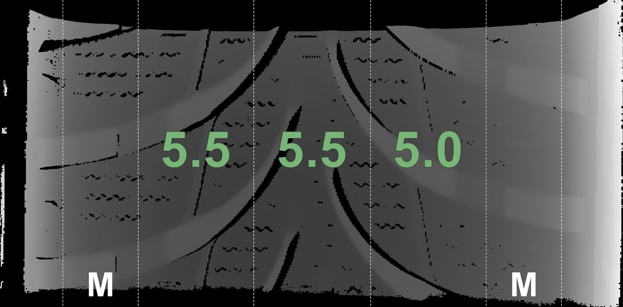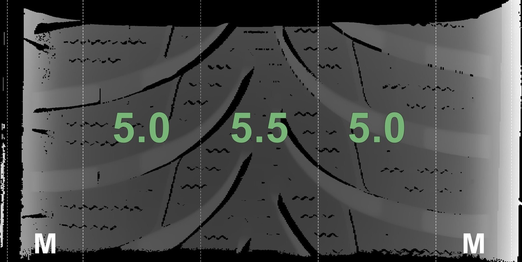 De gemeten profieldieptes en de details van de velgen zijn hierboven weergegeven.