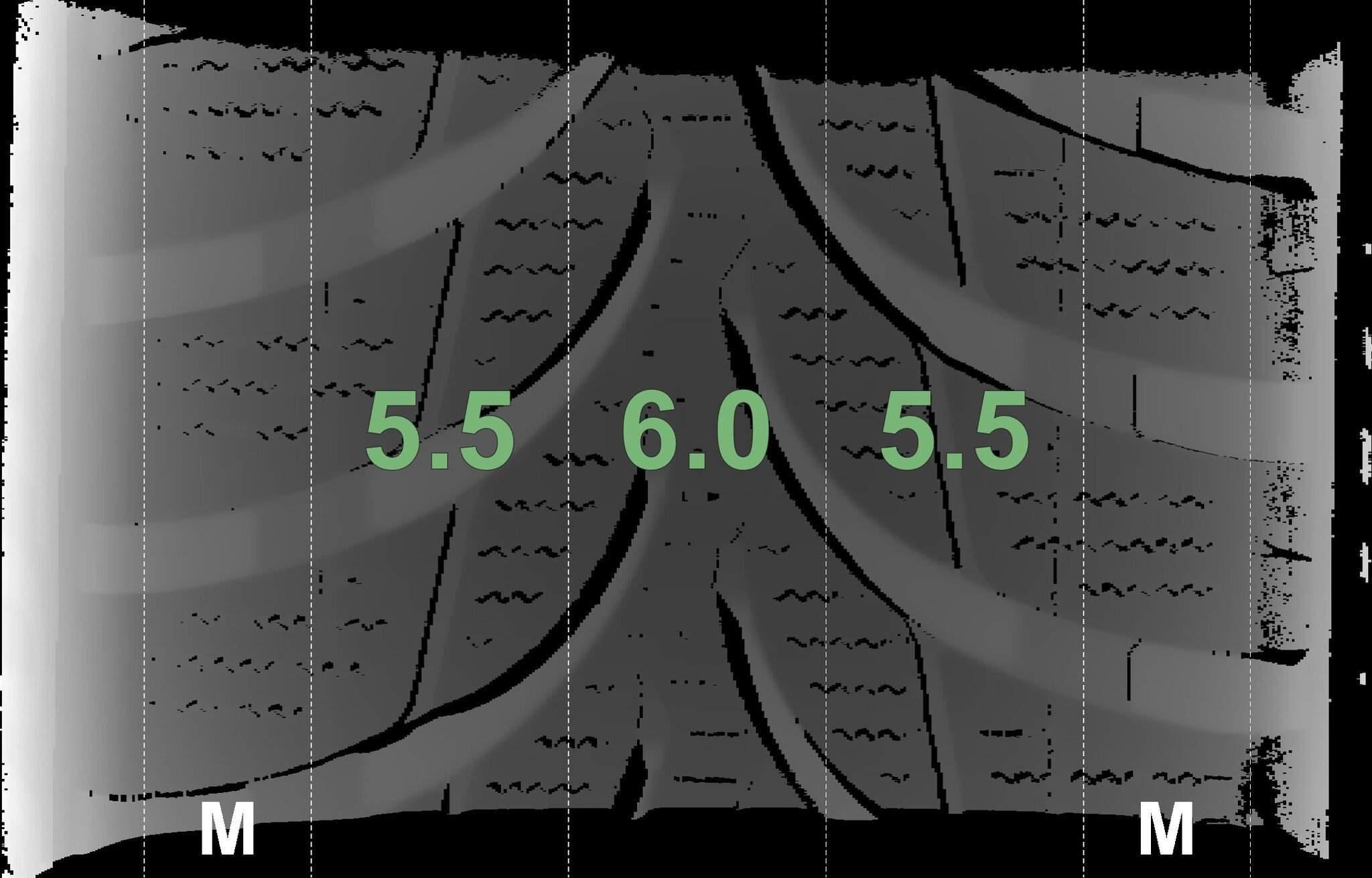 De gemeten profieldieptes en de details van de velgen zijn hierboven weergegeven.