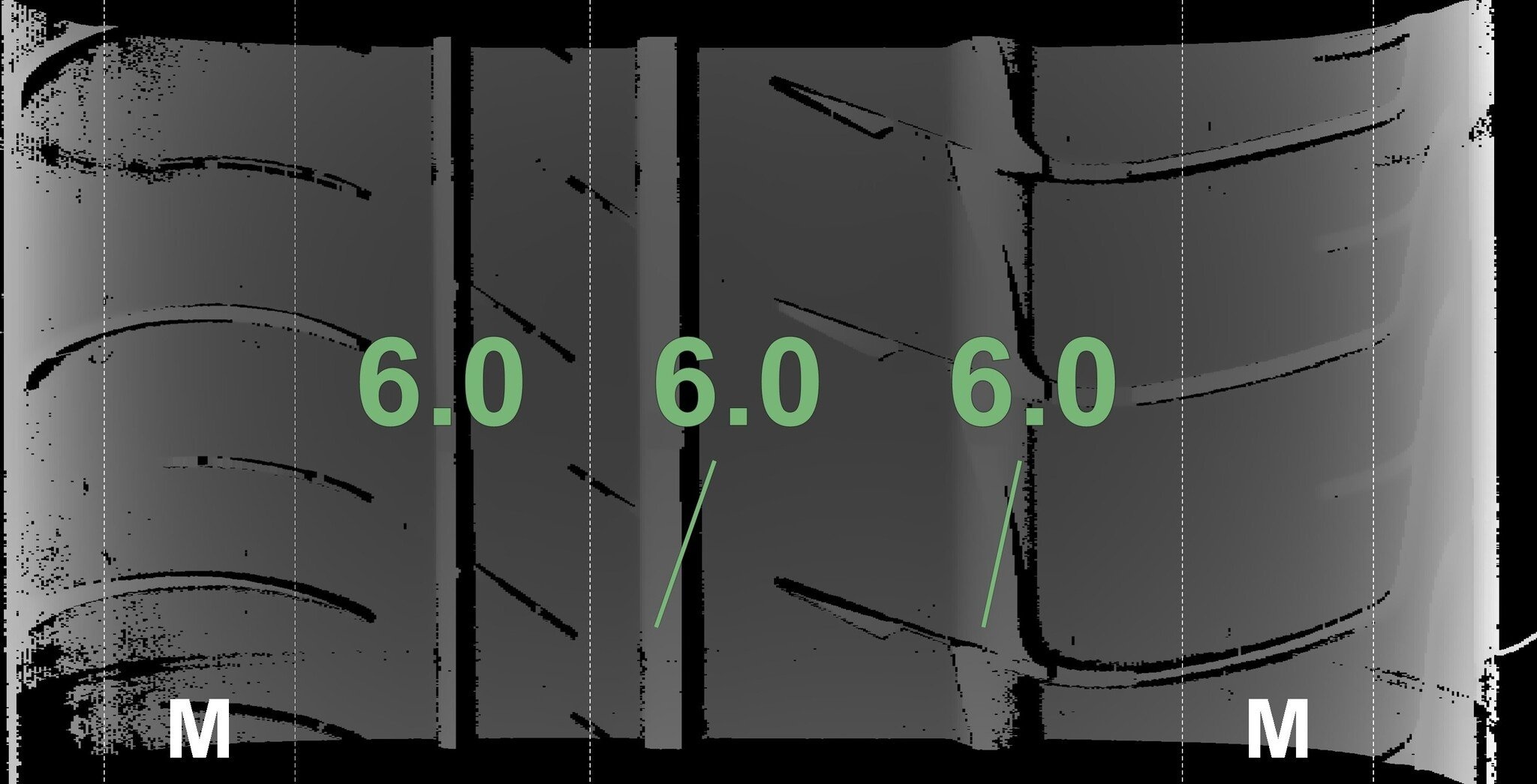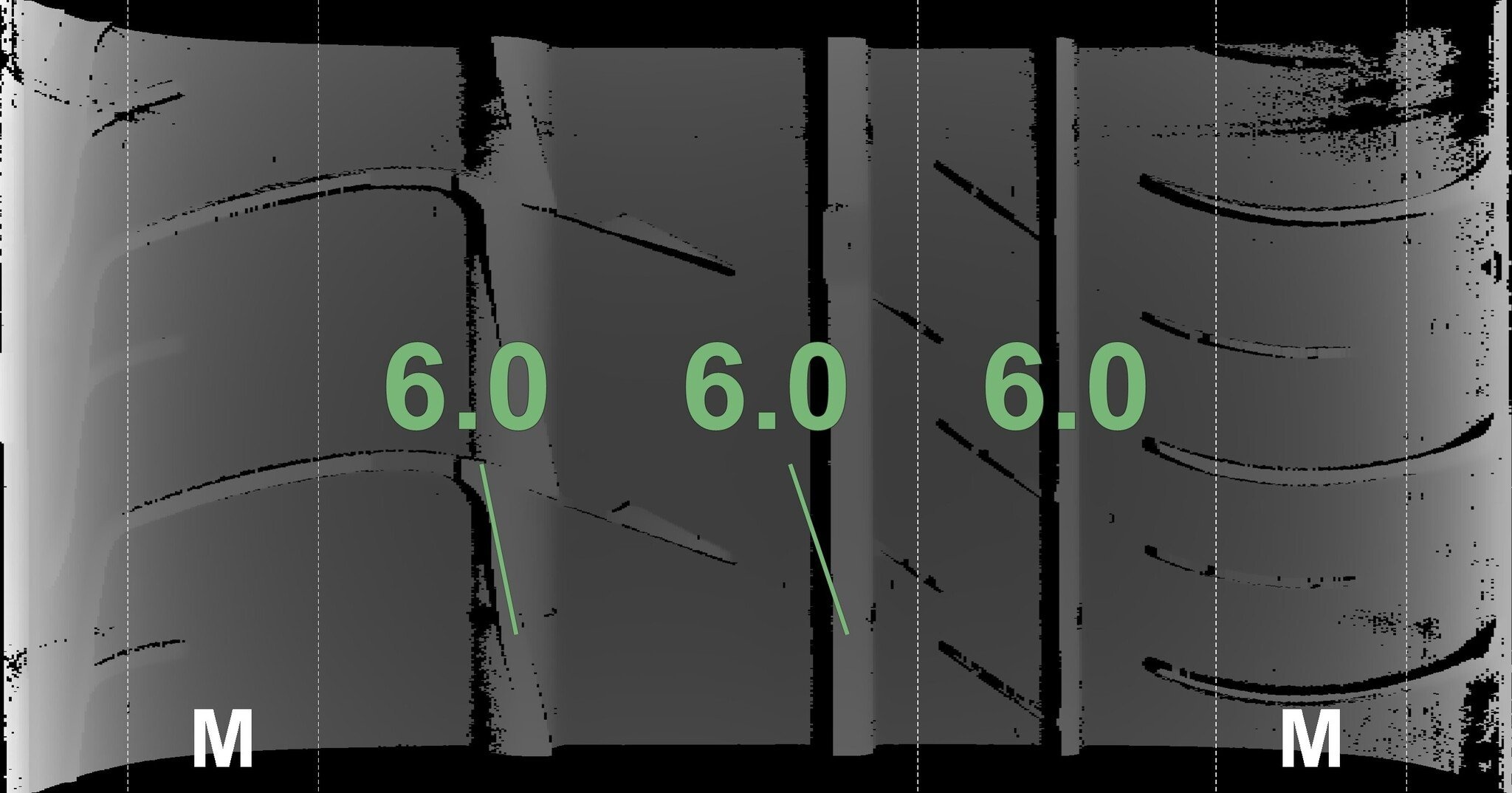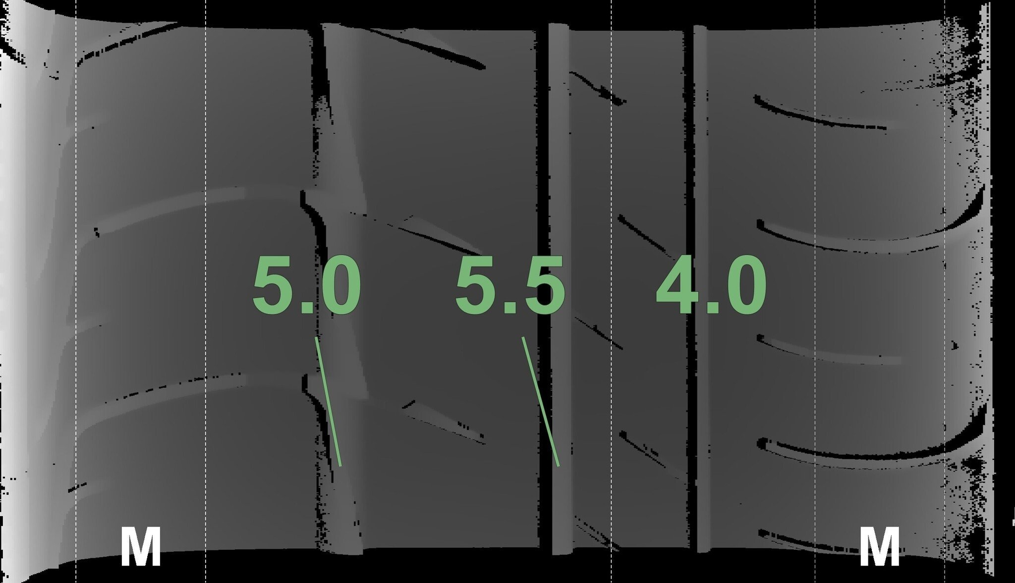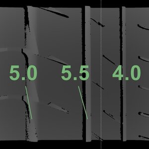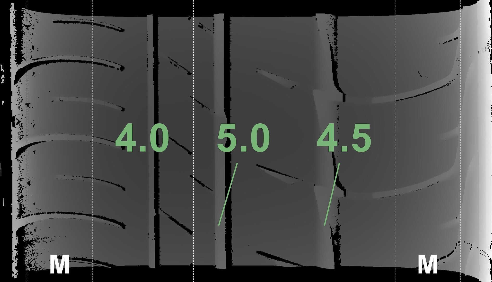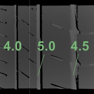 De gemeten profieldieptes en de details van de velgen zijn hierboven weergegeven.