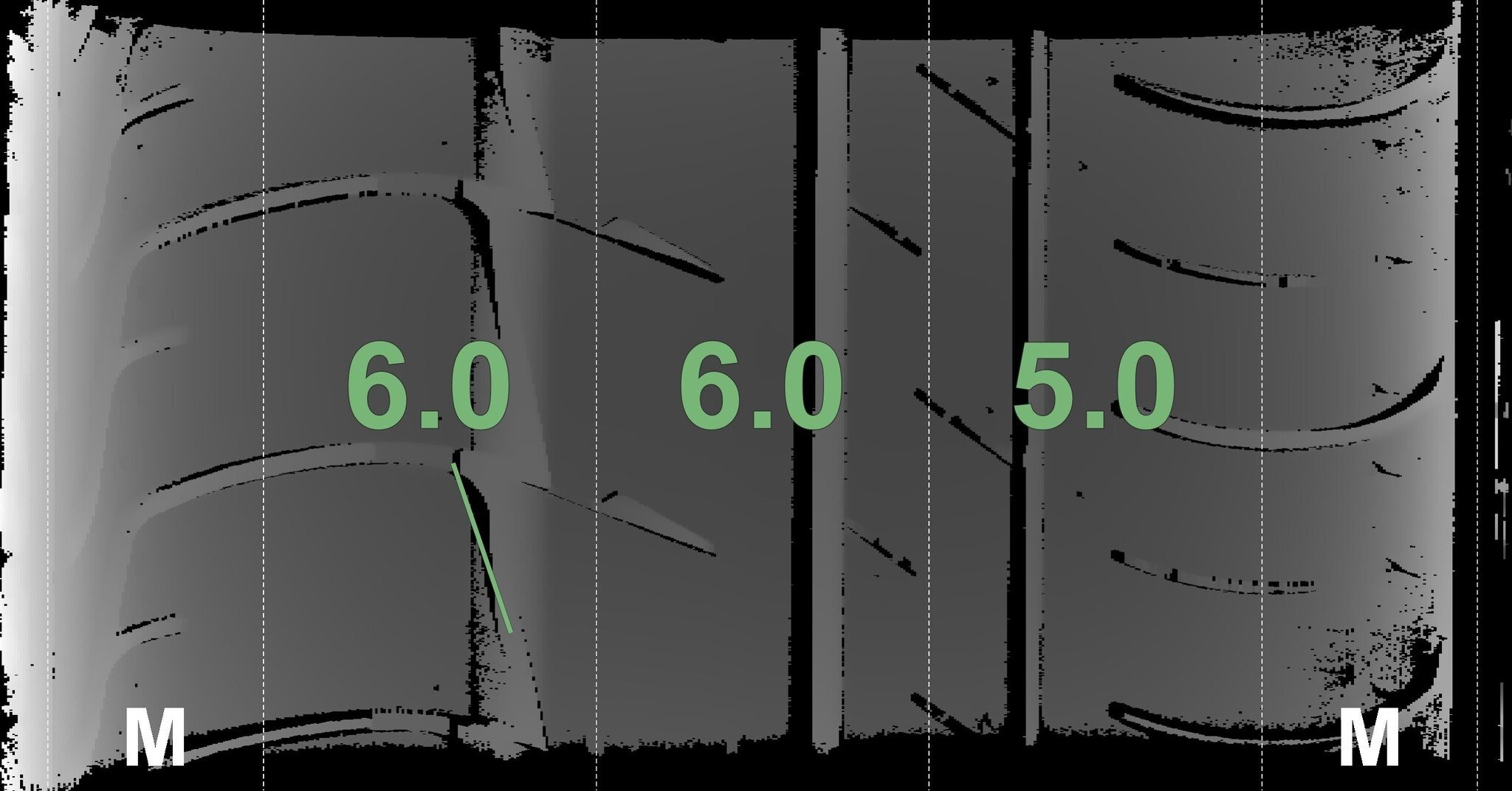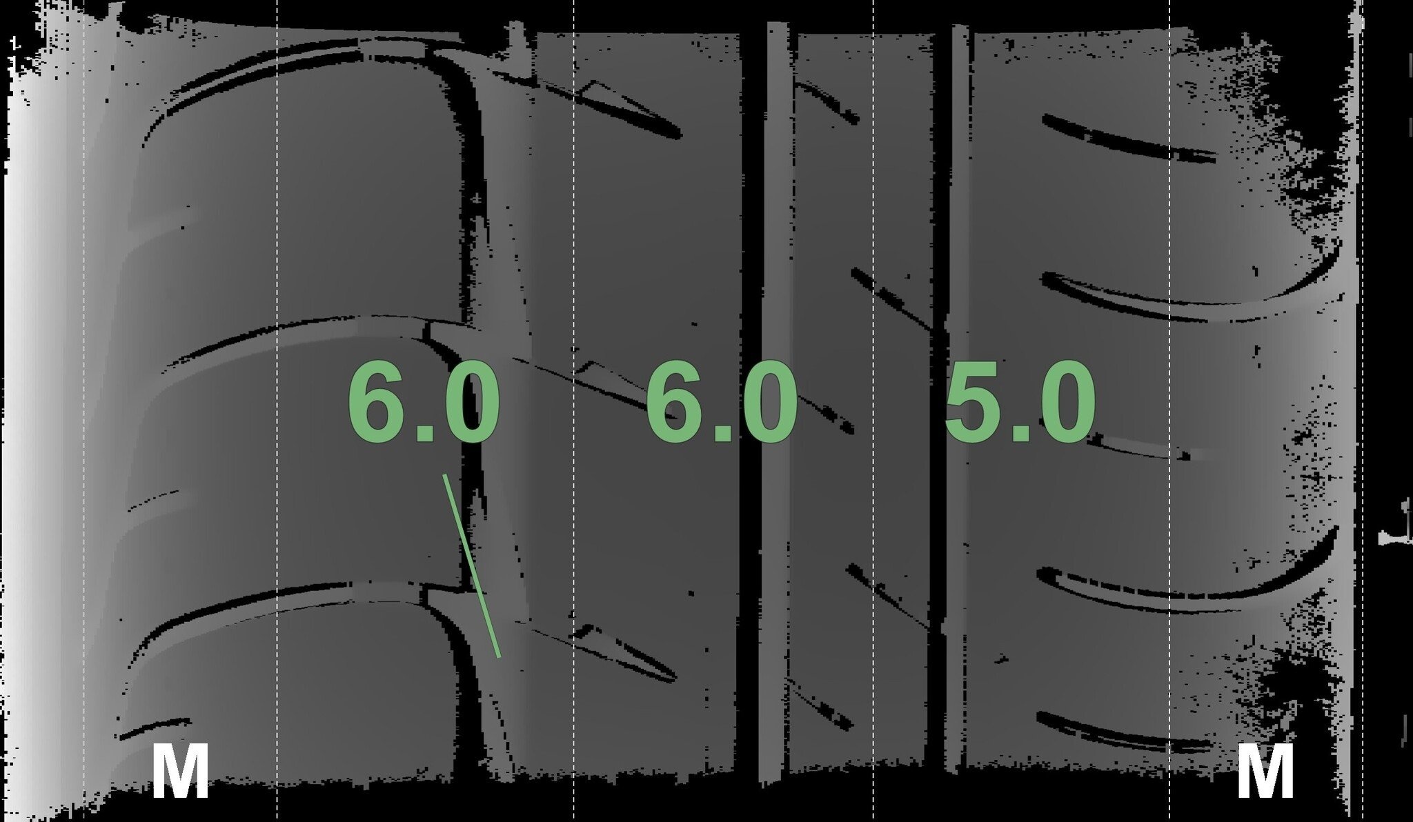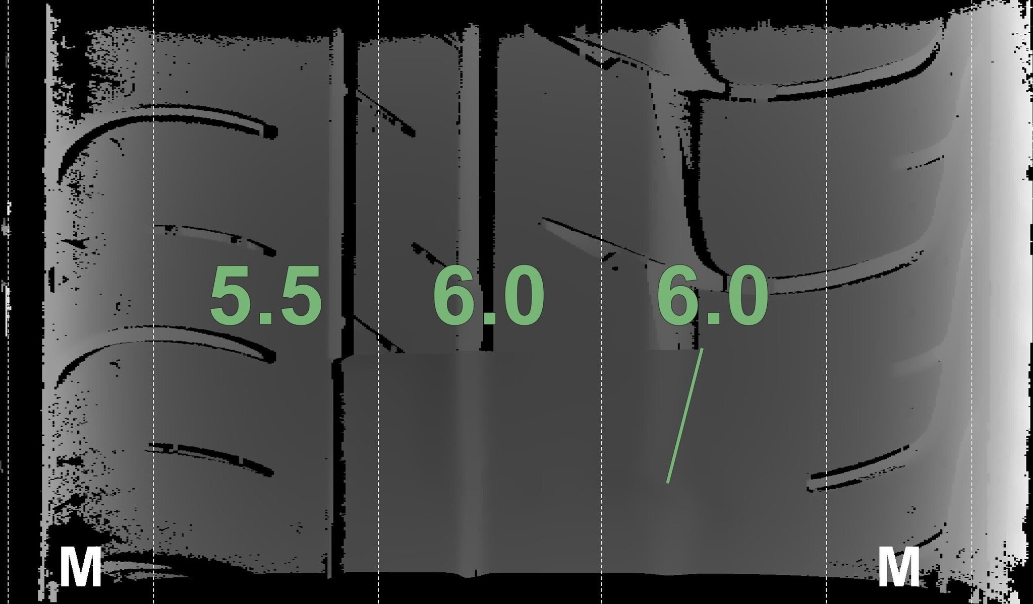 De gemeten profieldieptes en de details van de velgen zijn hierboven weergegeven.