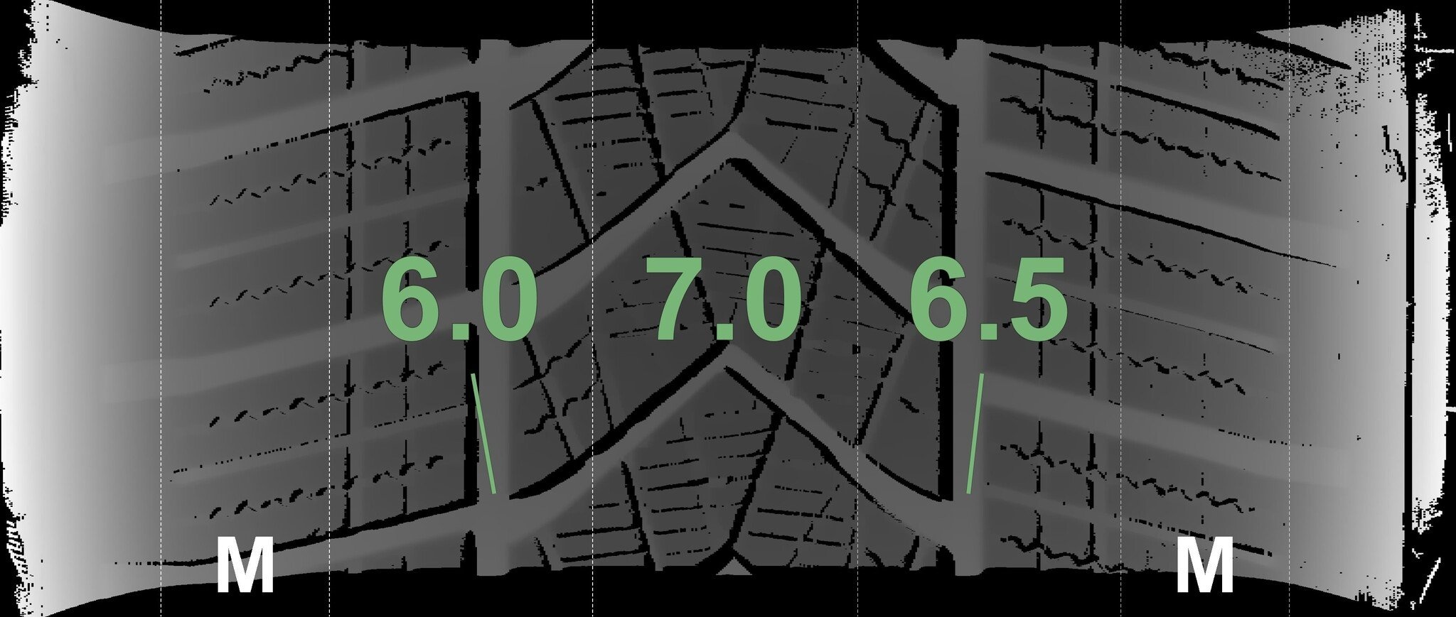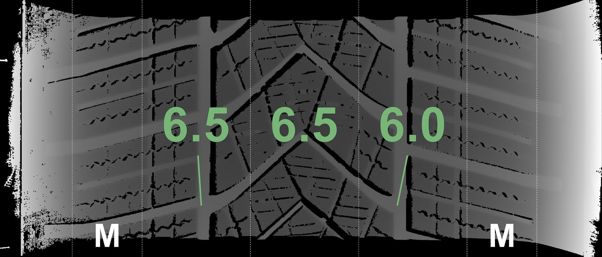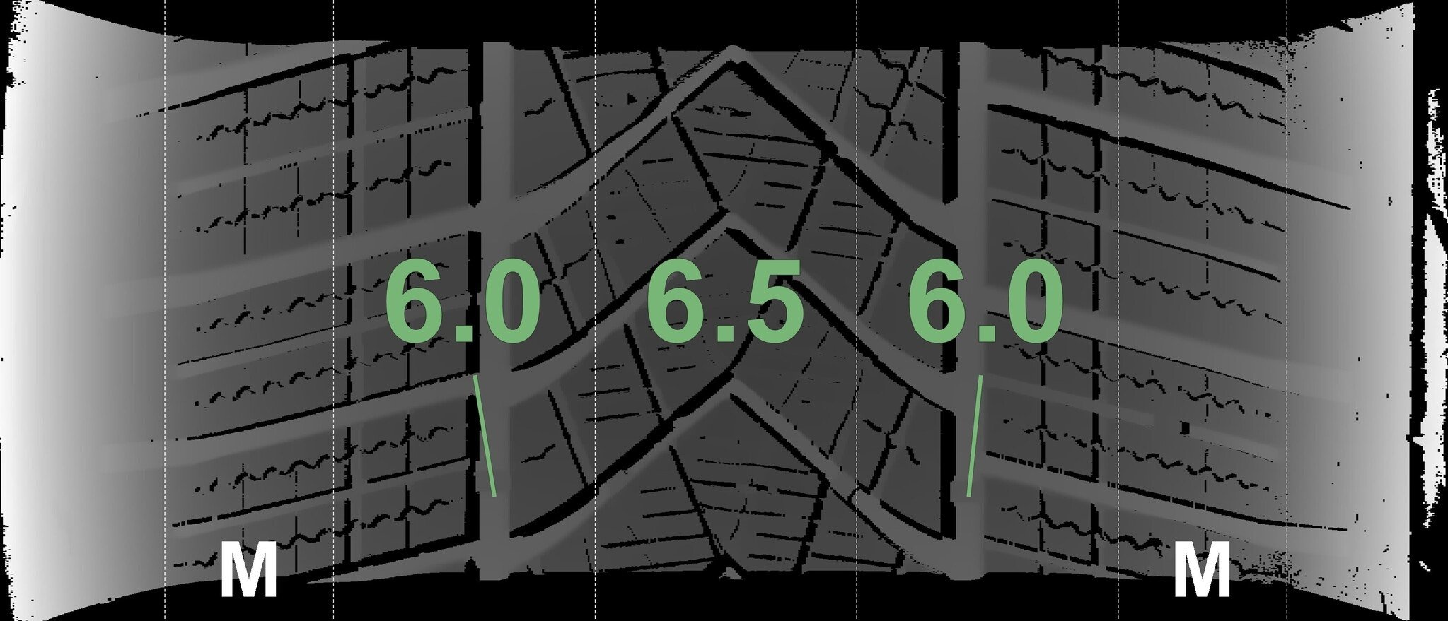 De gemeten profieldieptes en de details van de velgen zijn hierboven weergegeven.