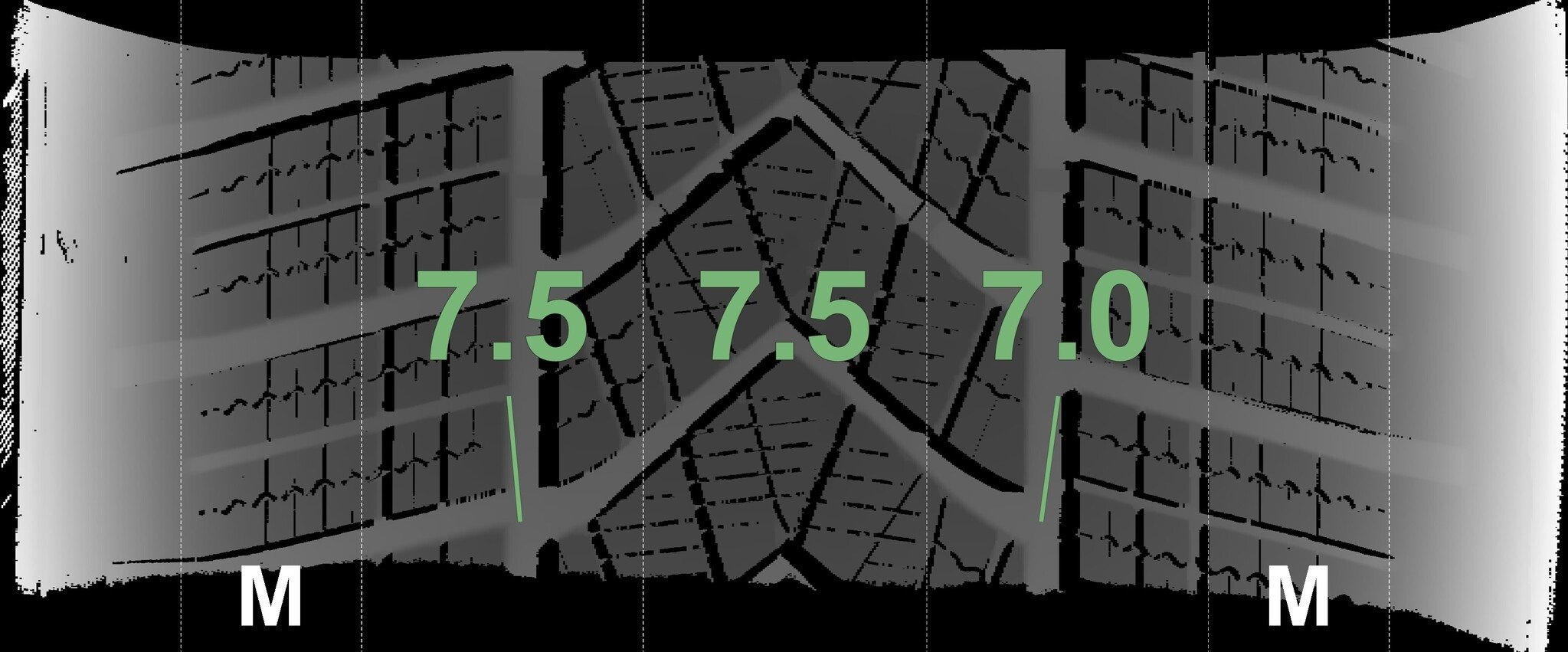 De gemeten profieldieptes en de details van de velgen zijn hierboven weergegeven.