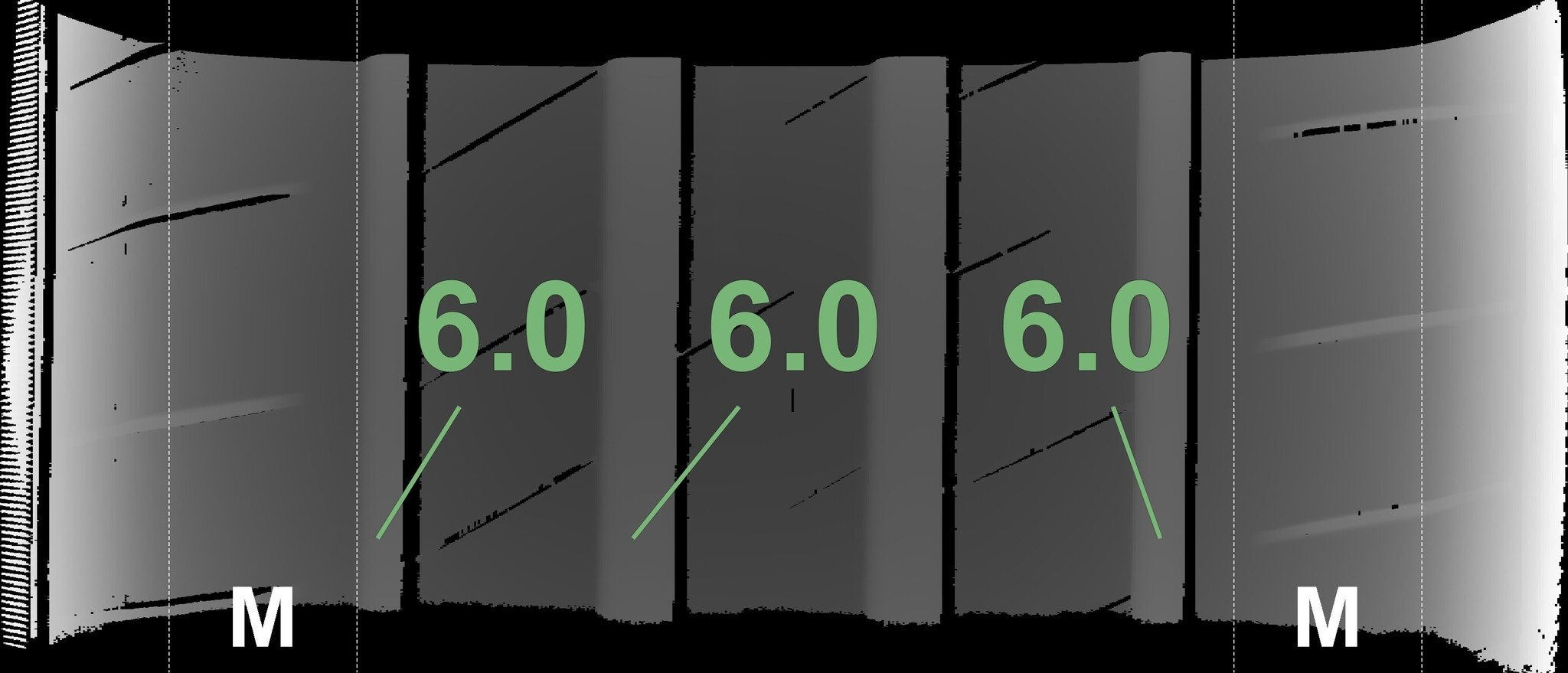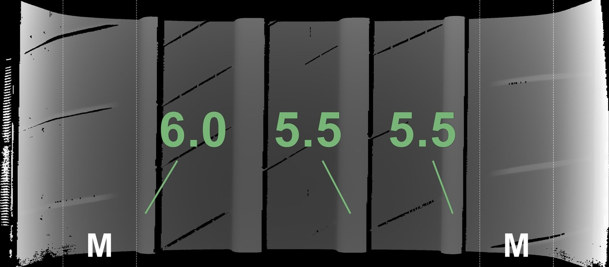 De gemeten profieldieptes en de details van de velgen zijn hierboven weergegeven.