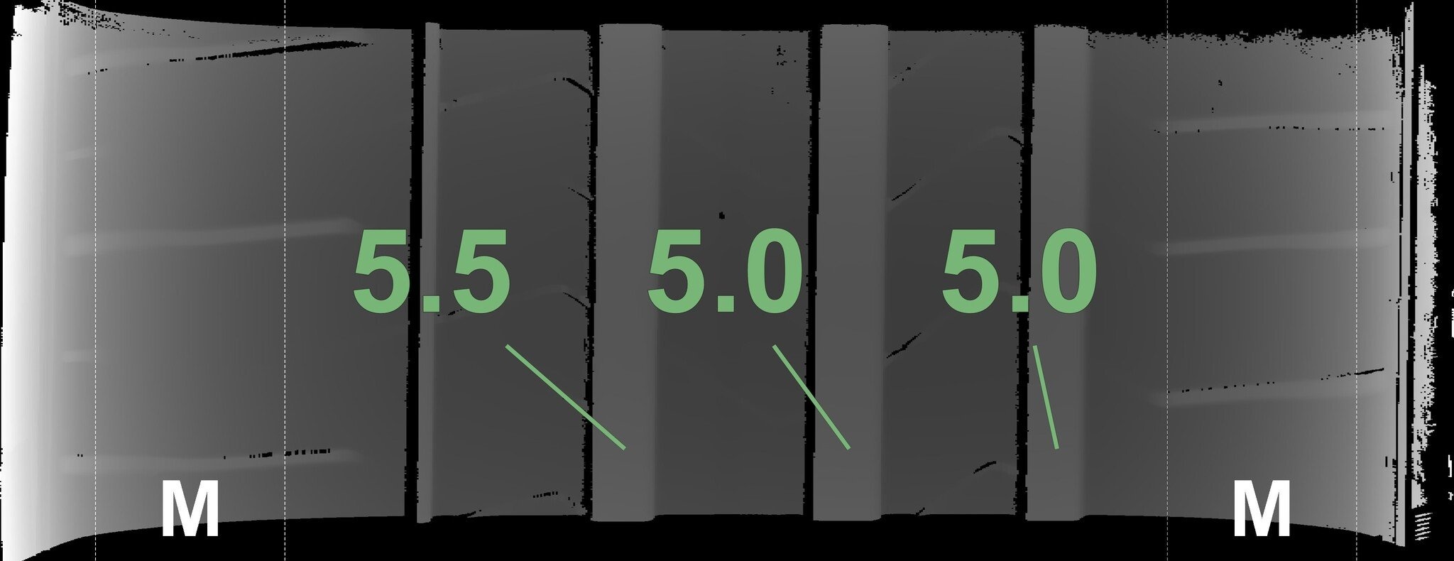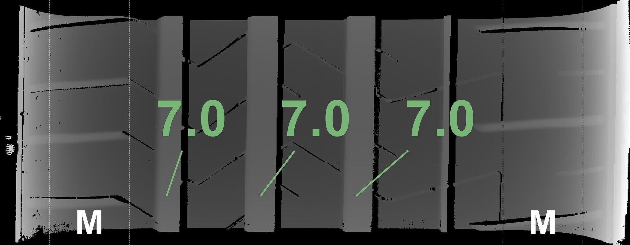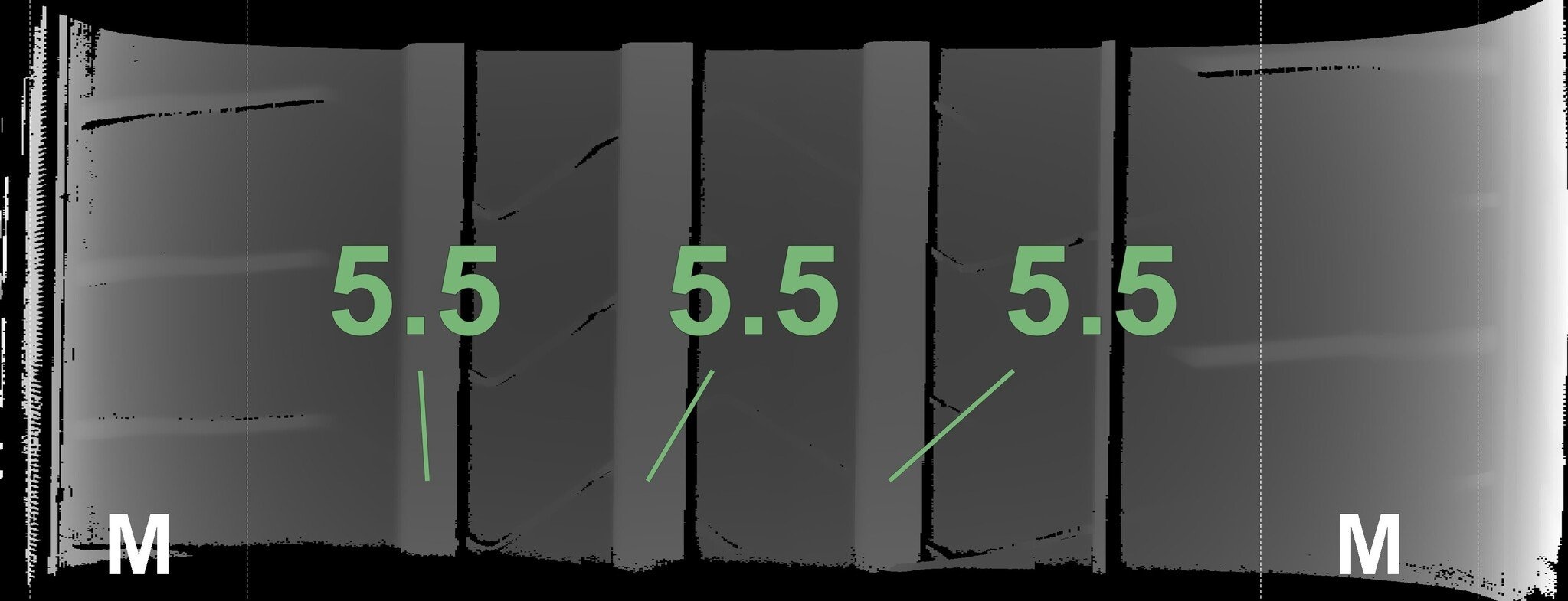 De gemeten profieldieptes en de details van de velgen zijn hierboven weergegeven.