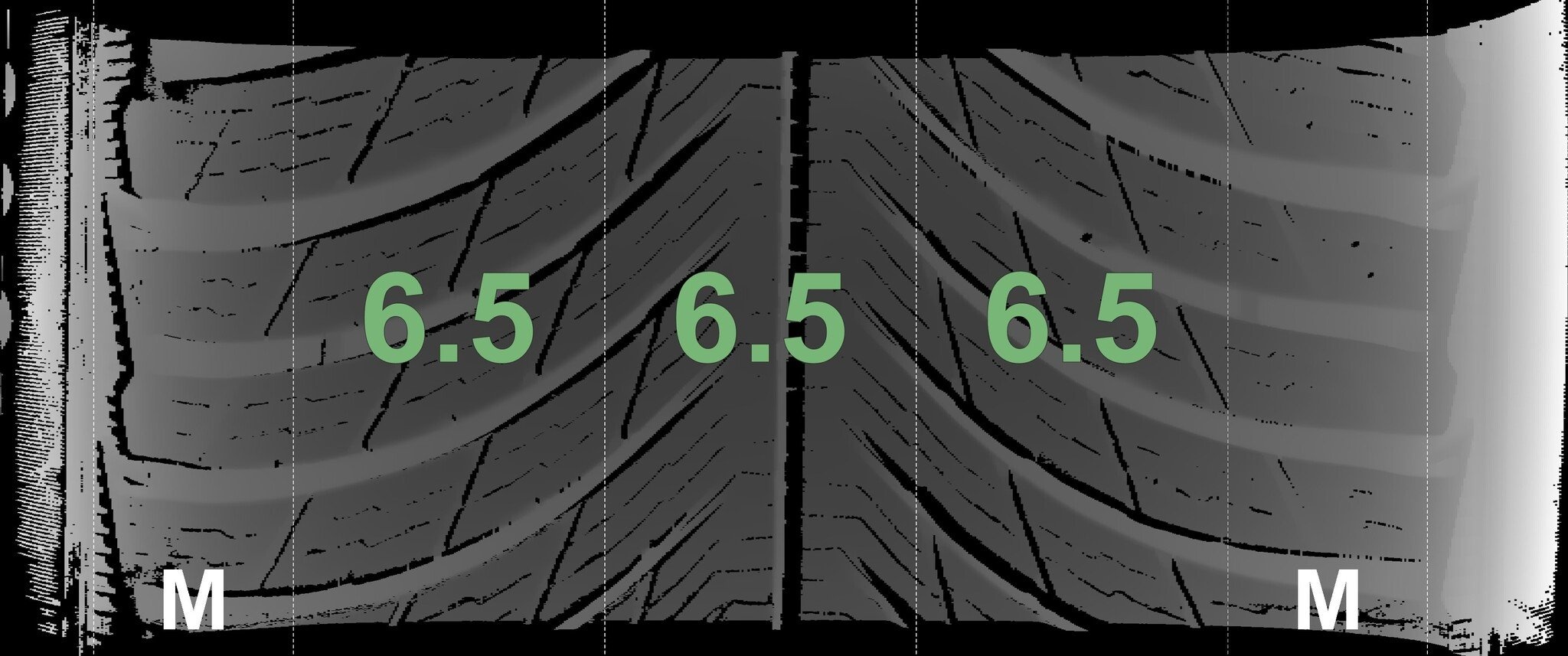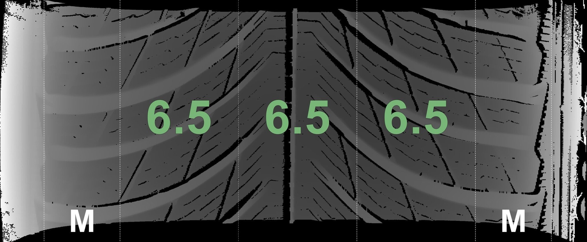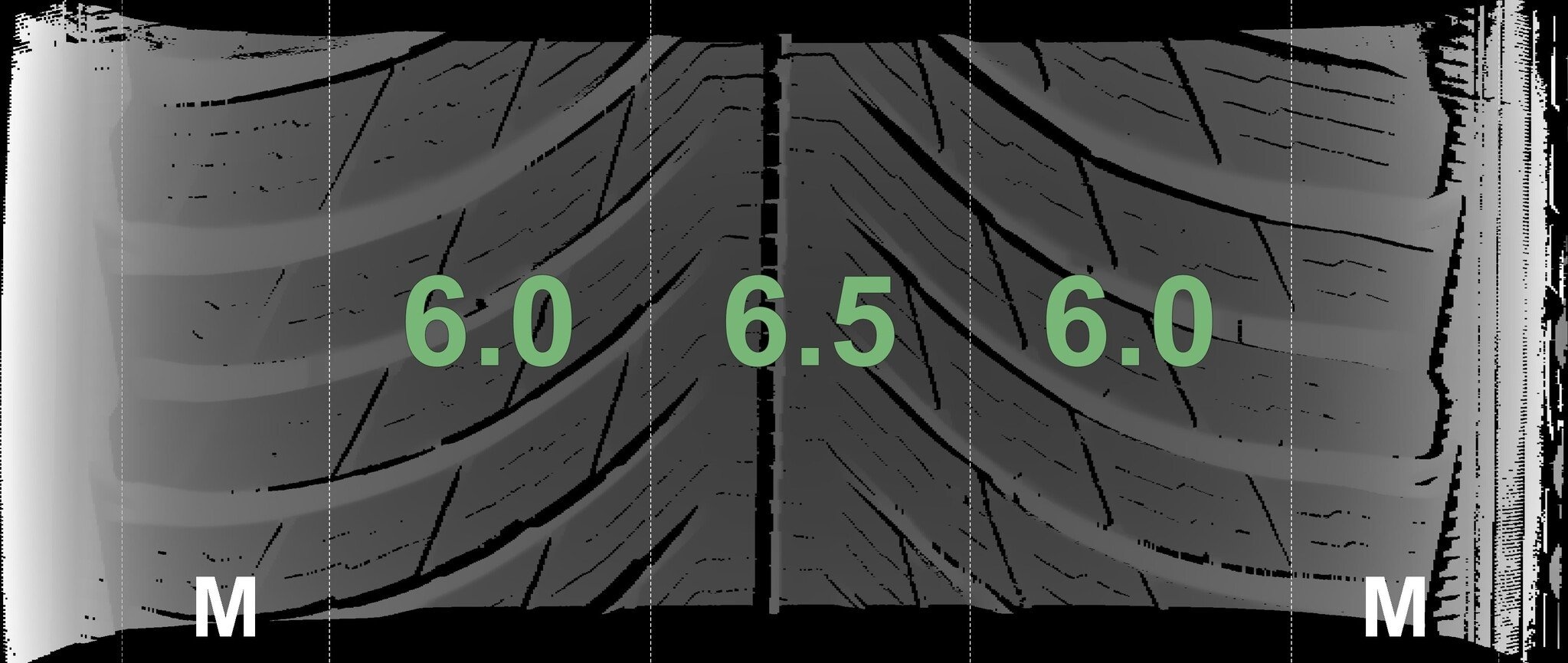 De gemeten profieldieptes en de details van de velgen zijn hierboven weergegeven.