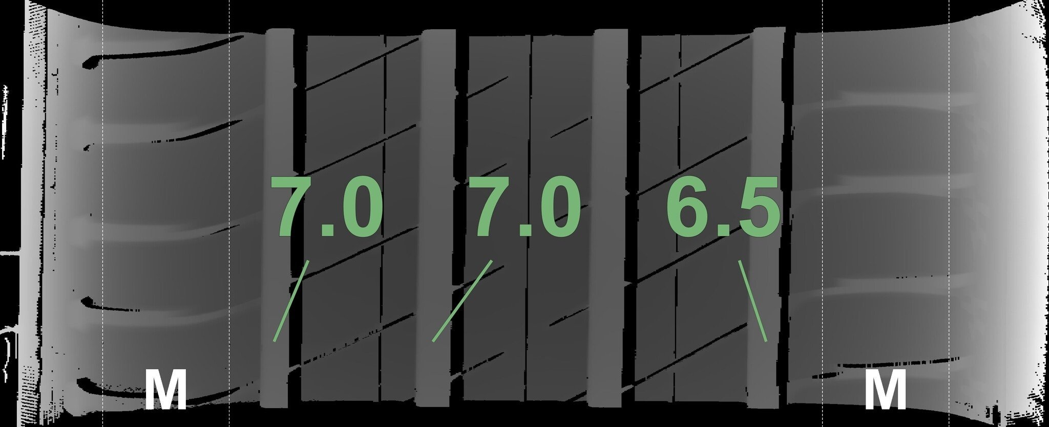 | Conditie | Profieldiepte | DOT | Rechts Voor | Demo nopjes nog zichtbaar | 7.0 mm | 4618 |