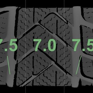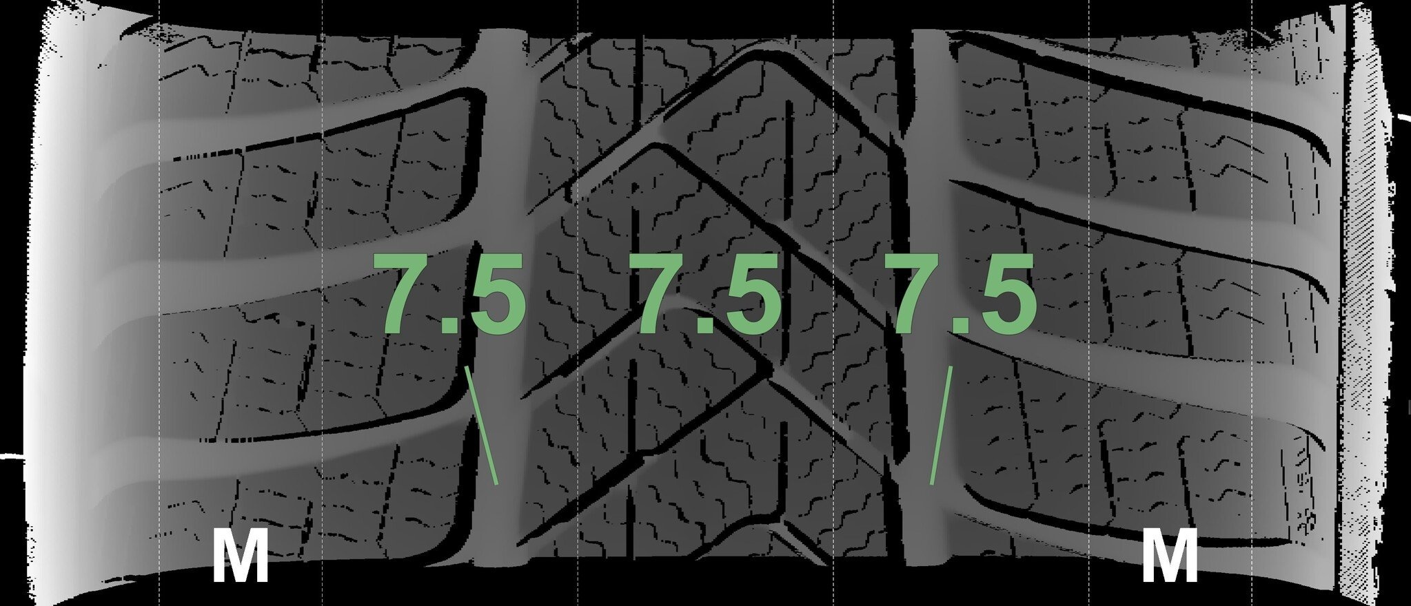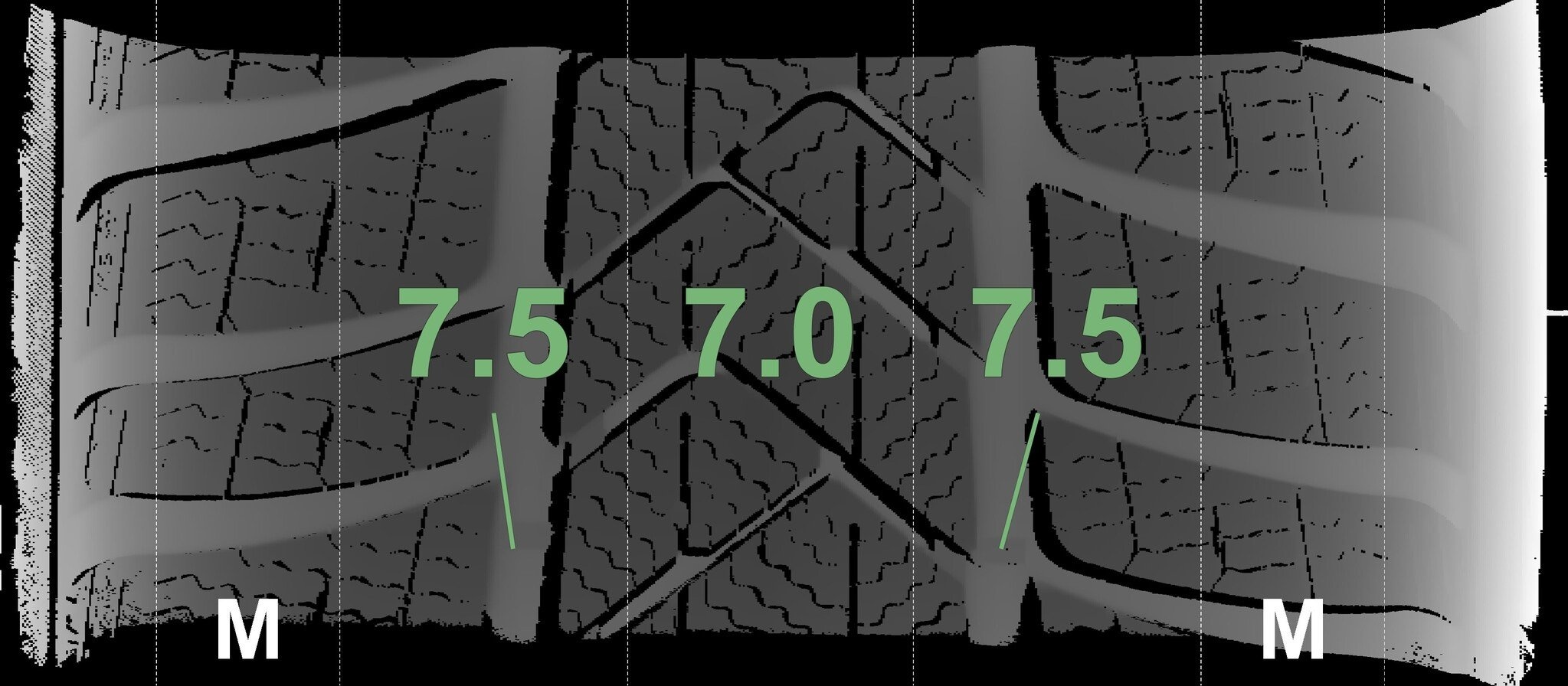 De gemeten profieldieptes en de details van de velgen zijn hierboven weergegeven.