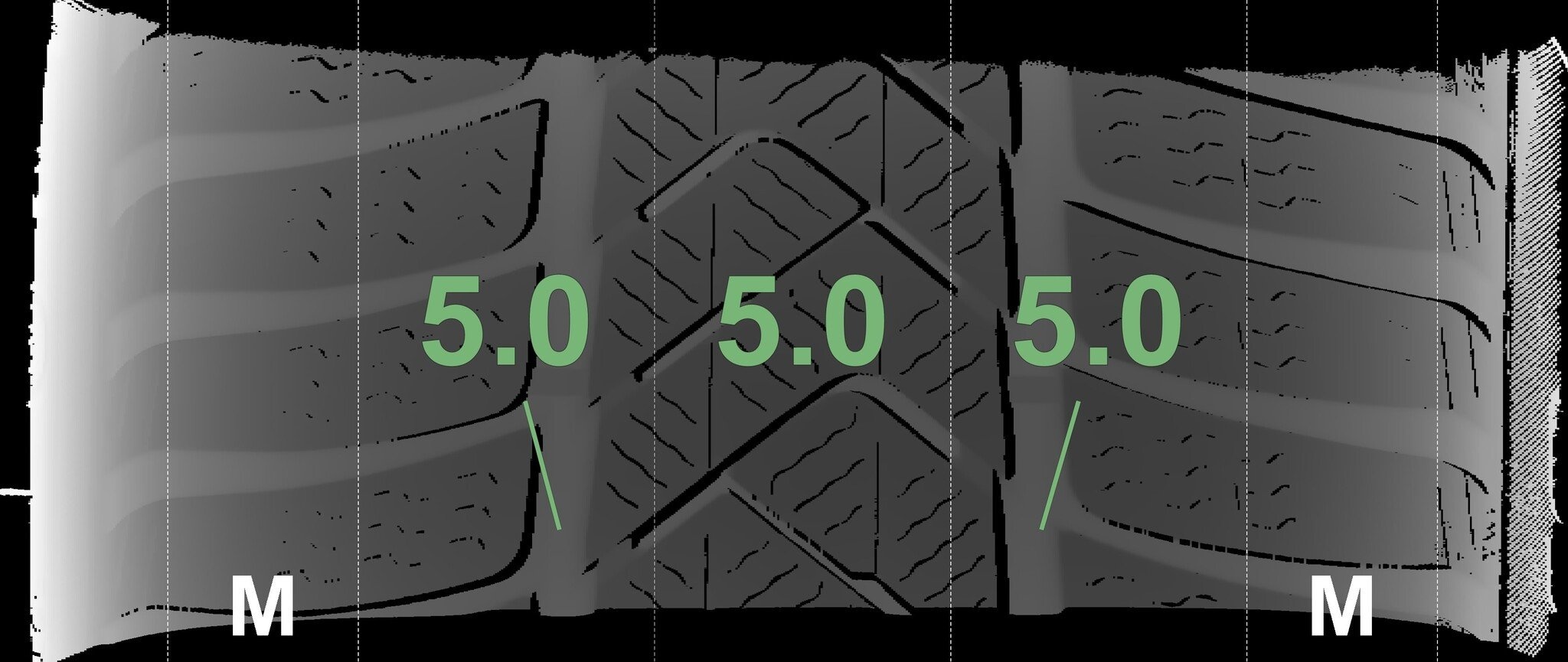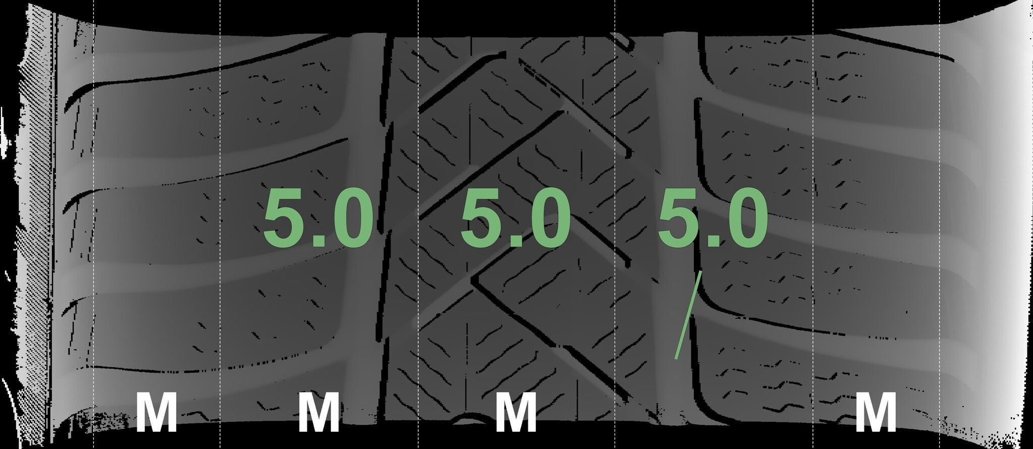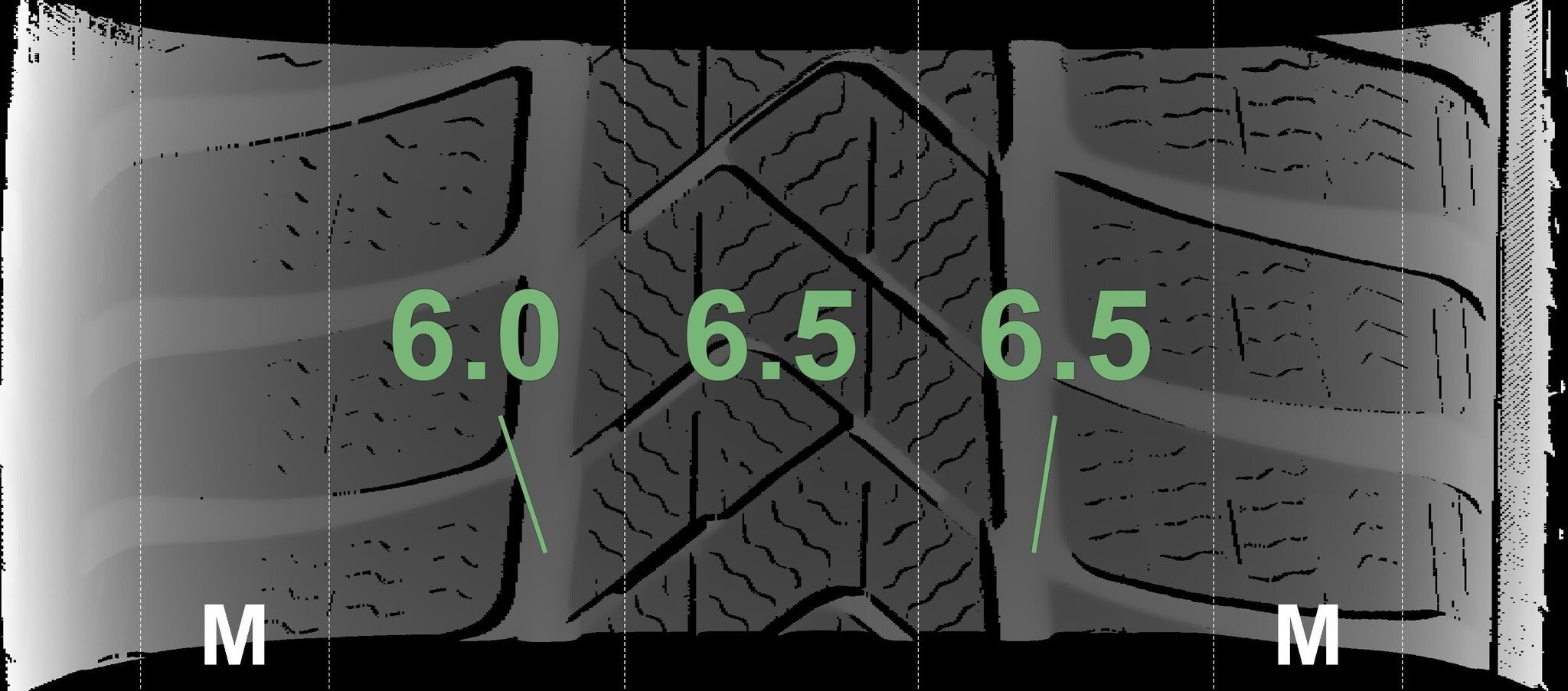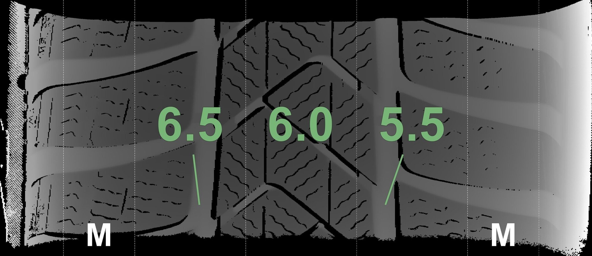 De gemeten profieldieptes en de details van de velgen zijn hierboven weergegeven.