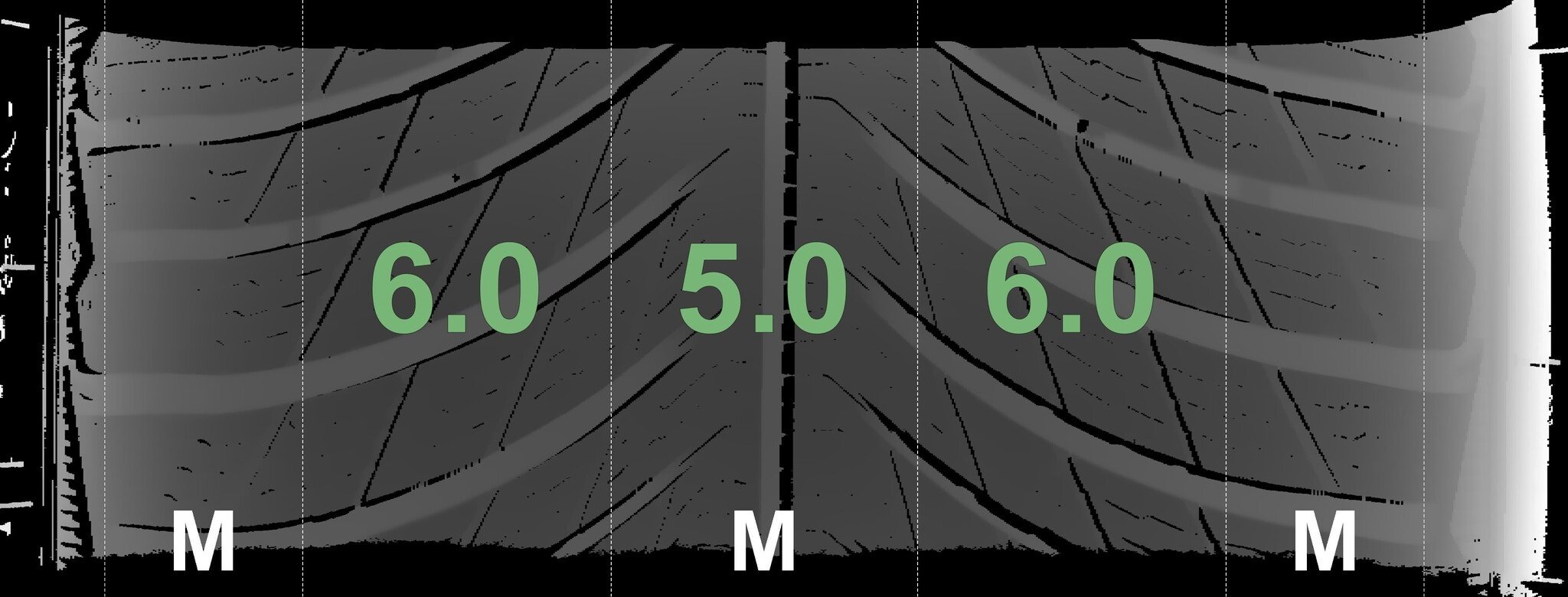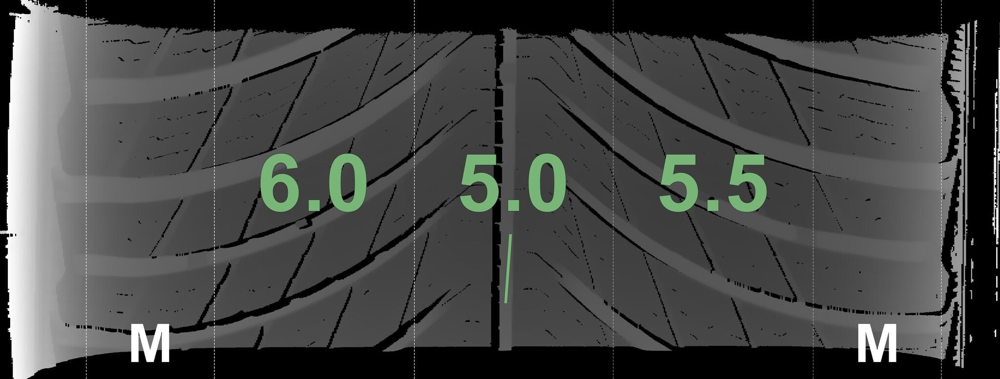 De gemeten profieldieptes en de details van de velgen zijn hierboven weergegeven.