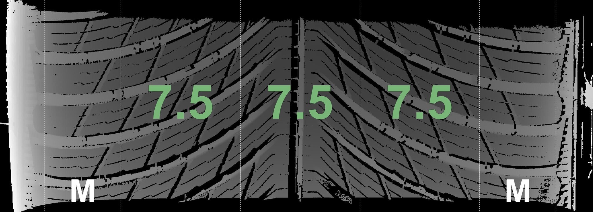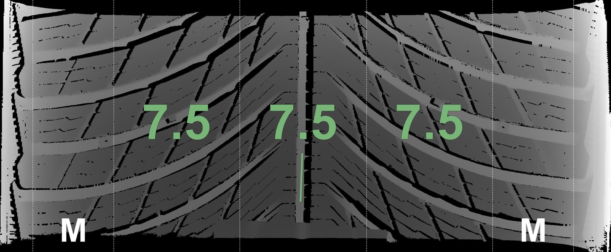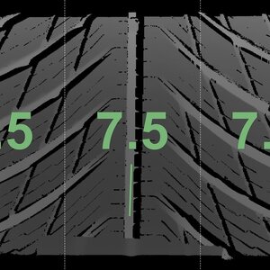 De gemeten profieldieptes en de details van de velgen zijn hierboven weergegeven.