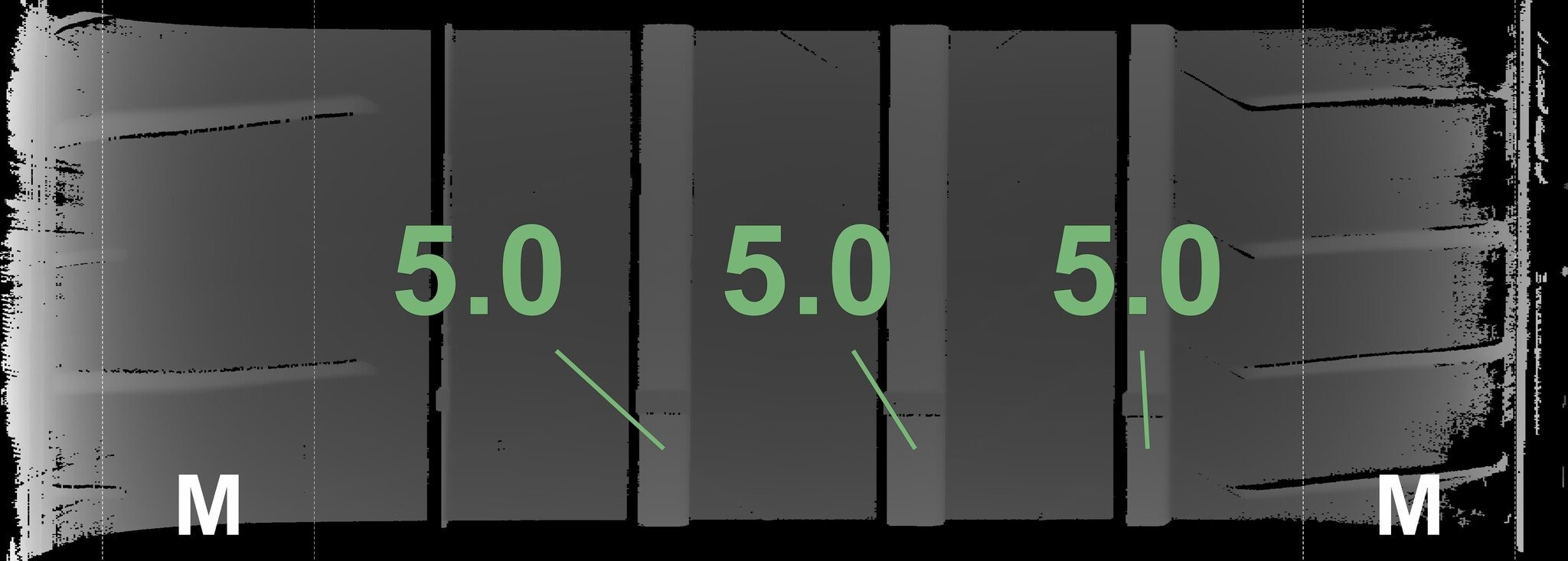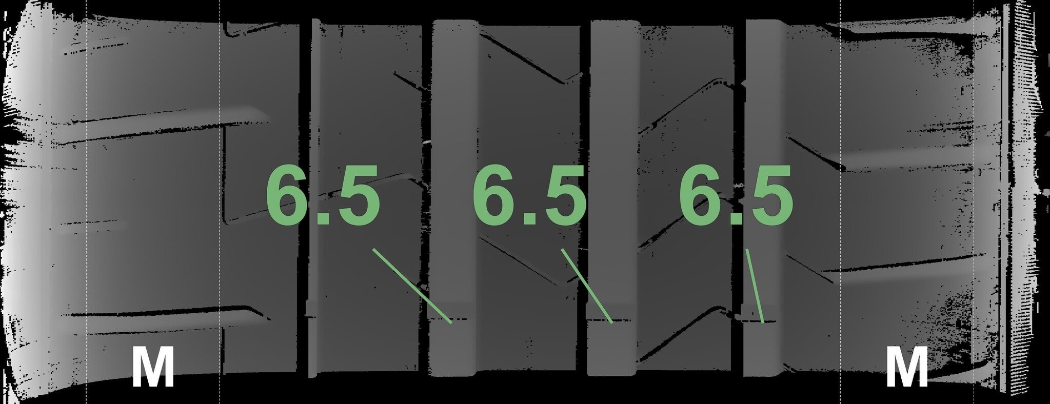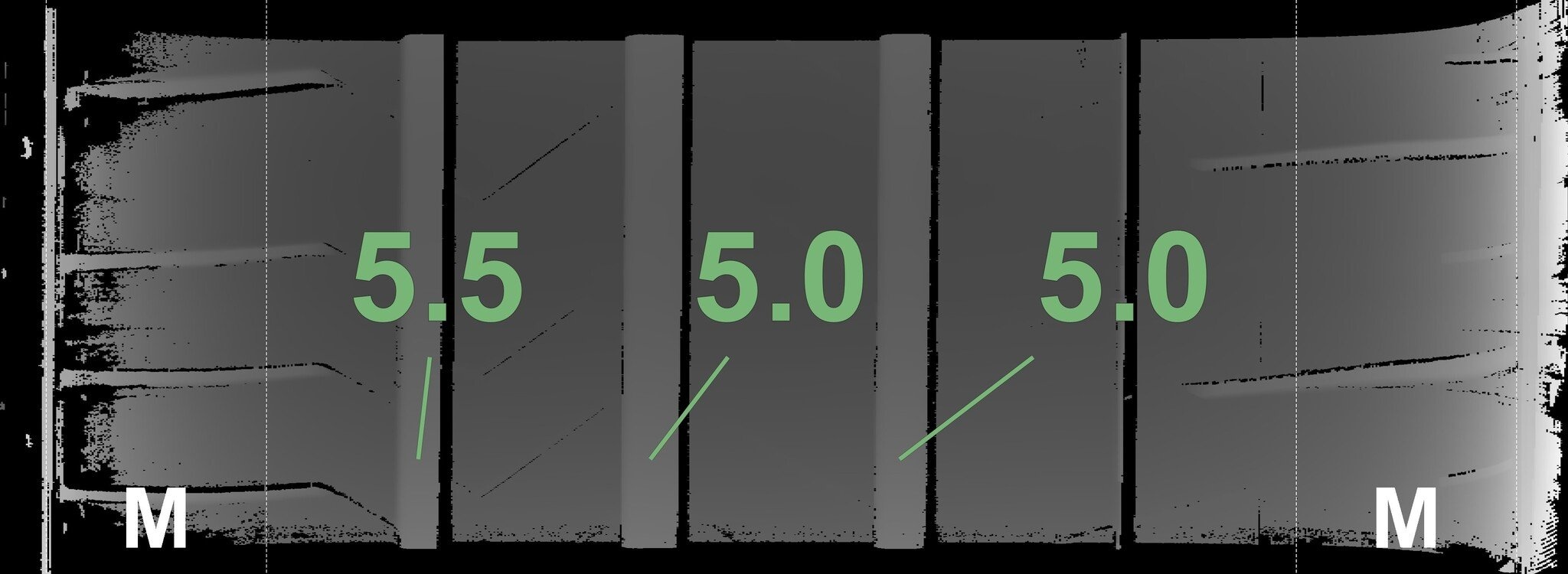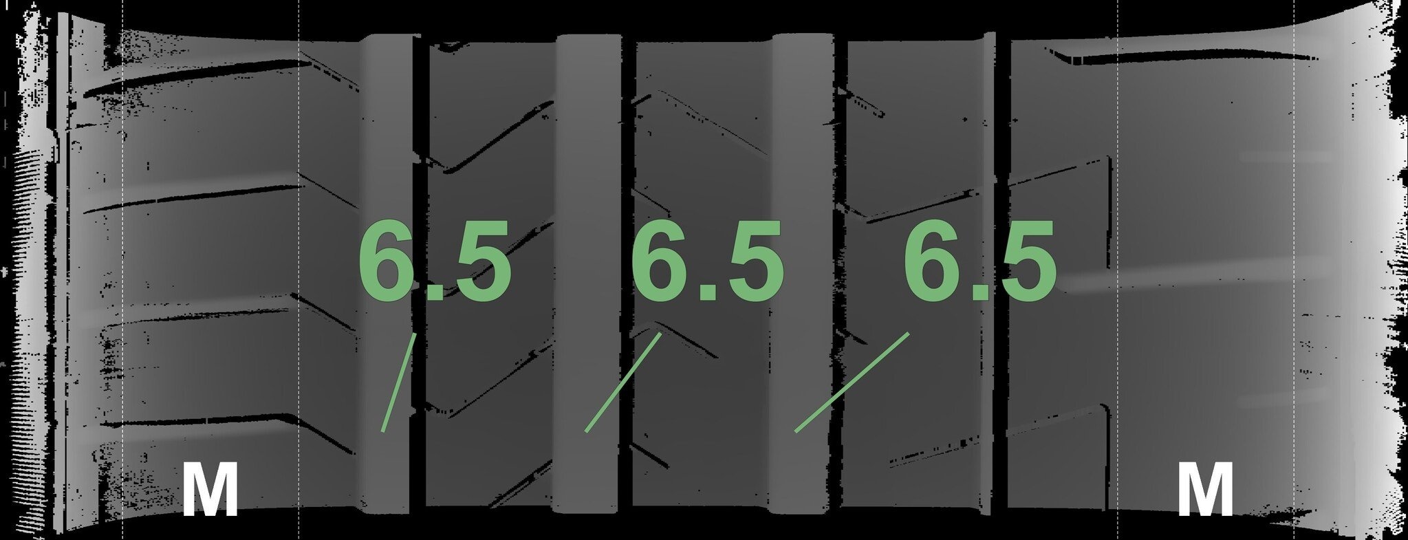 De gemeten profieldieptes en de details van de velgen zijn hierboven weergegeven.
